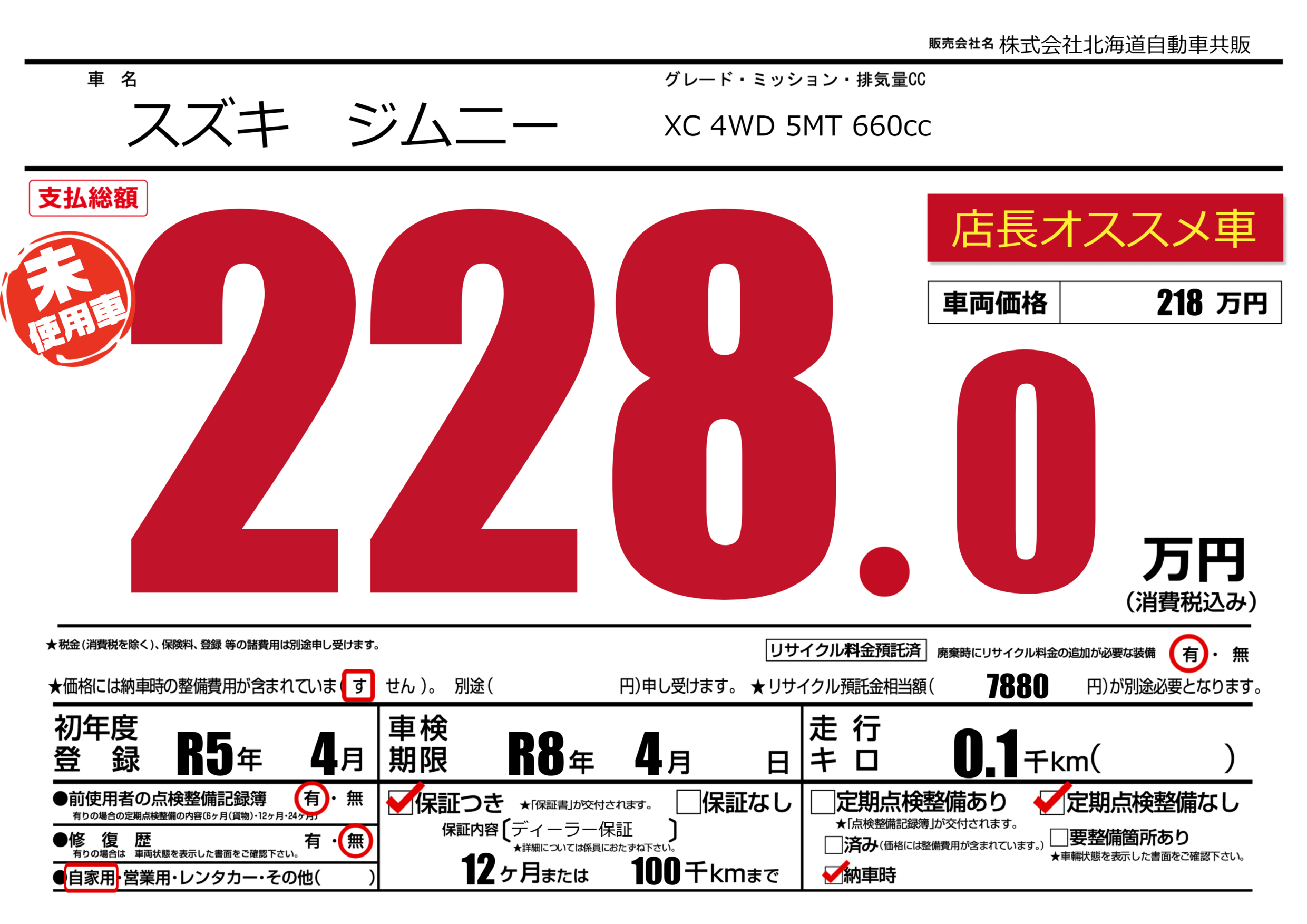 | 走行キロ | - | 初年度登録 | R5年4月 |