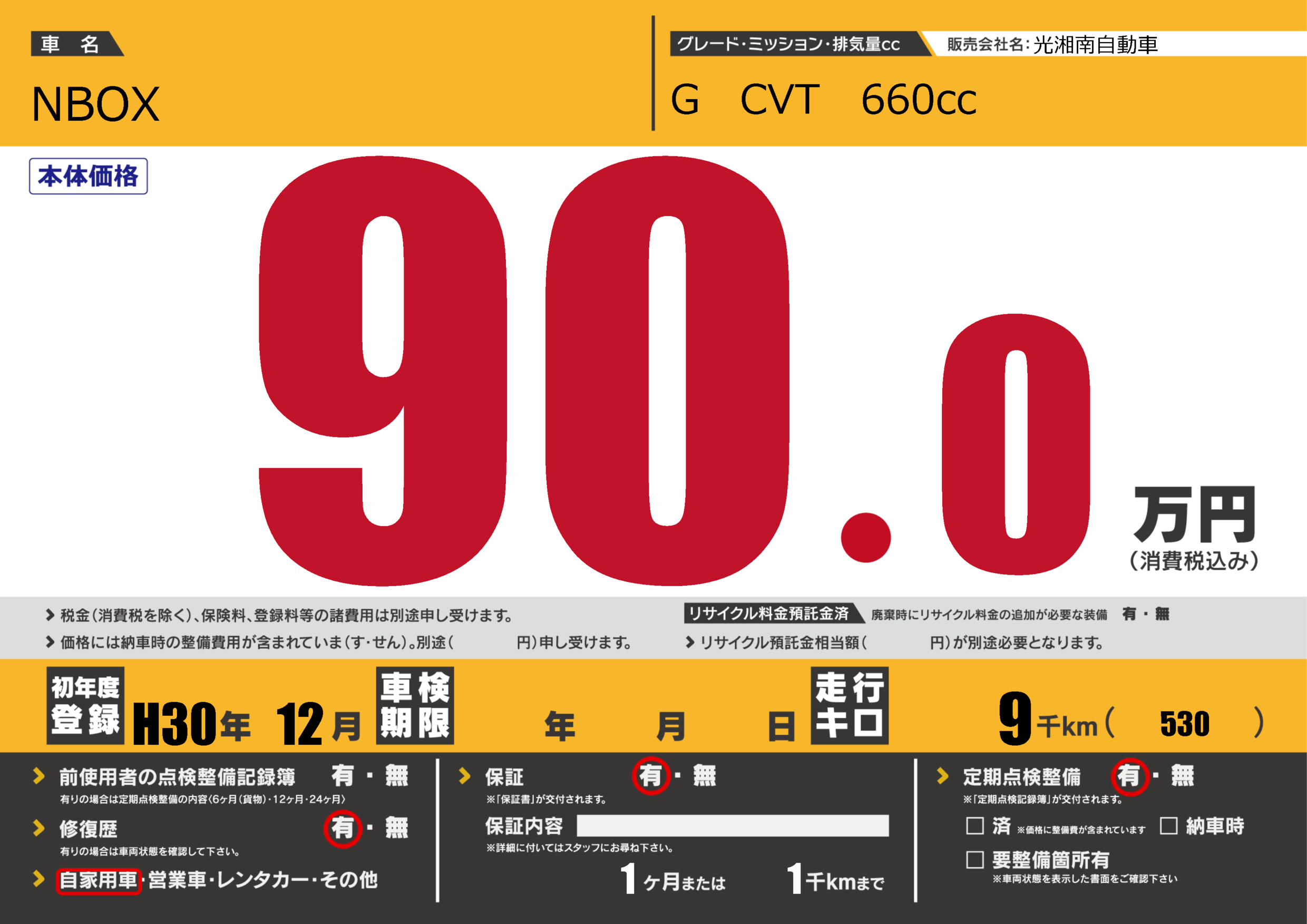 | 走行キロ | 0.9万km | 初年度登録 | H30年12月 |