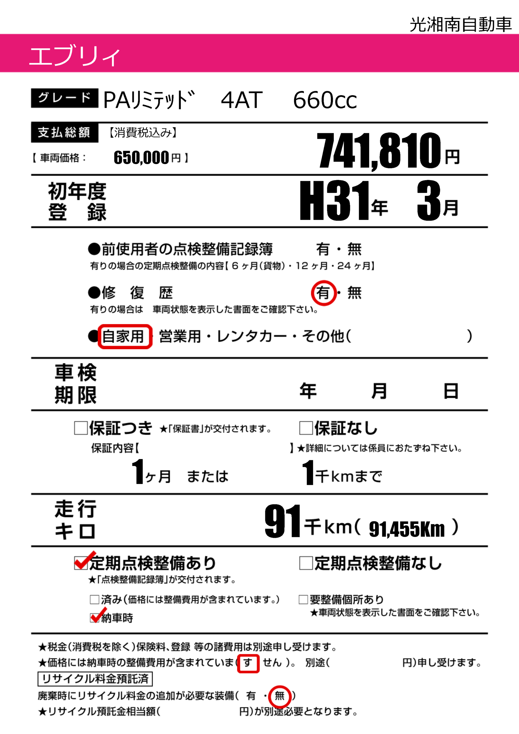 | 定期点検整備 | 定期点検整備あり 納車時あり | ||