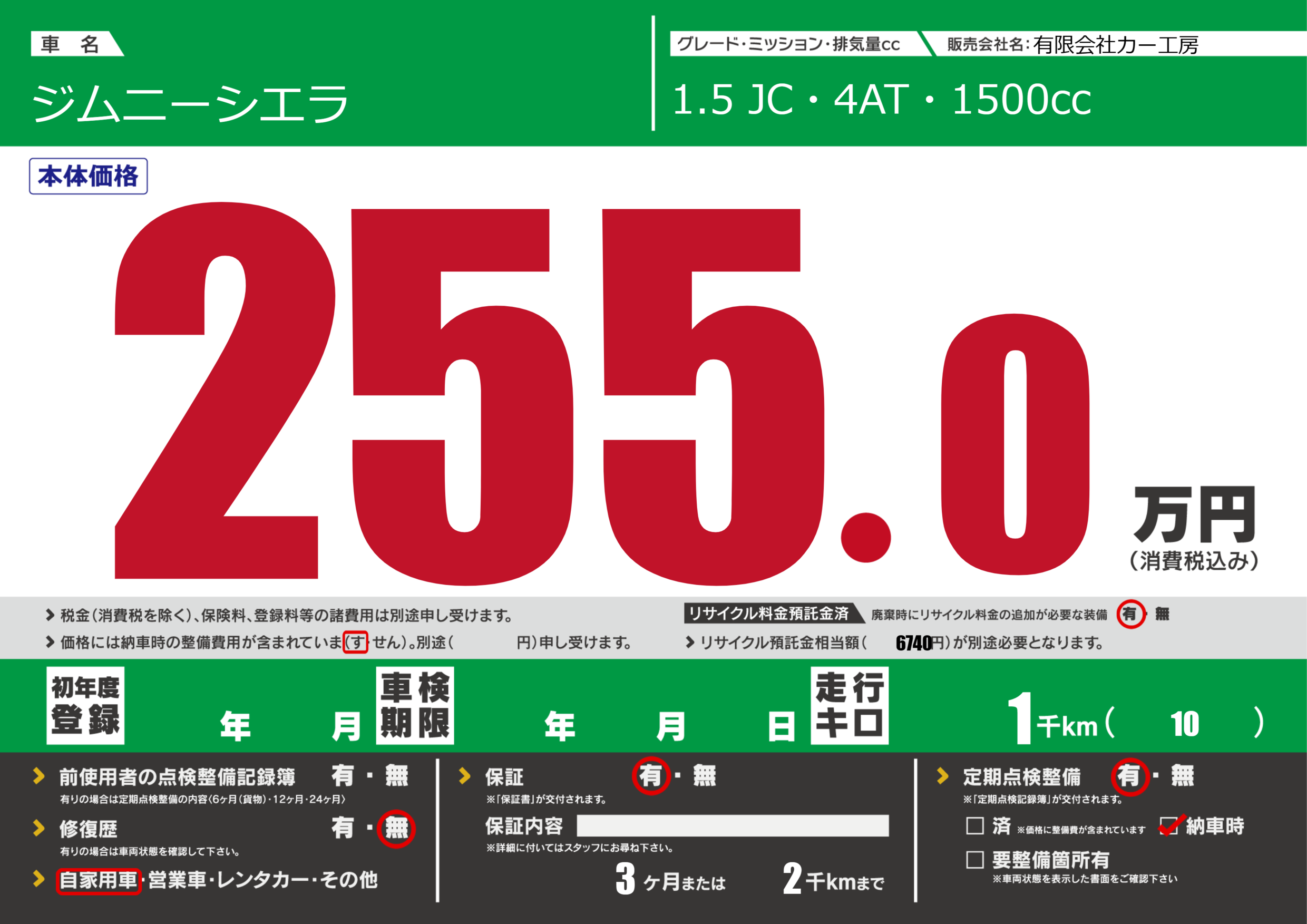 | 車名 | ジムニーシエラ | グレード ミッション 排気量 |