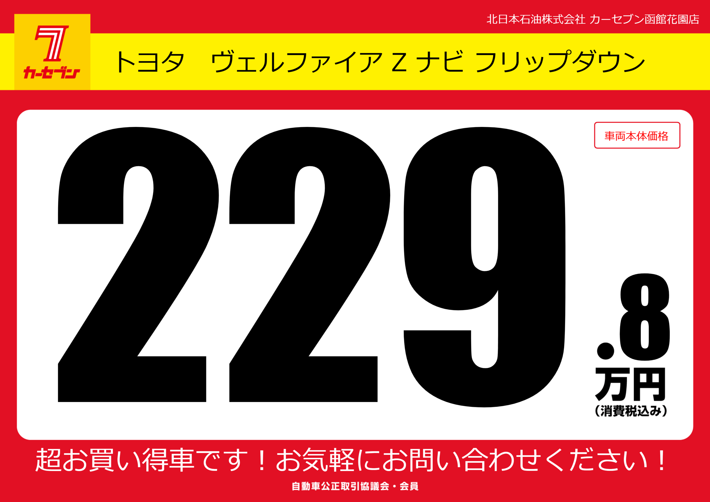 | 車名 | トヨタ ヴェルファイア Z ナビ フリップダウン | グレード ミッション 排気量 |