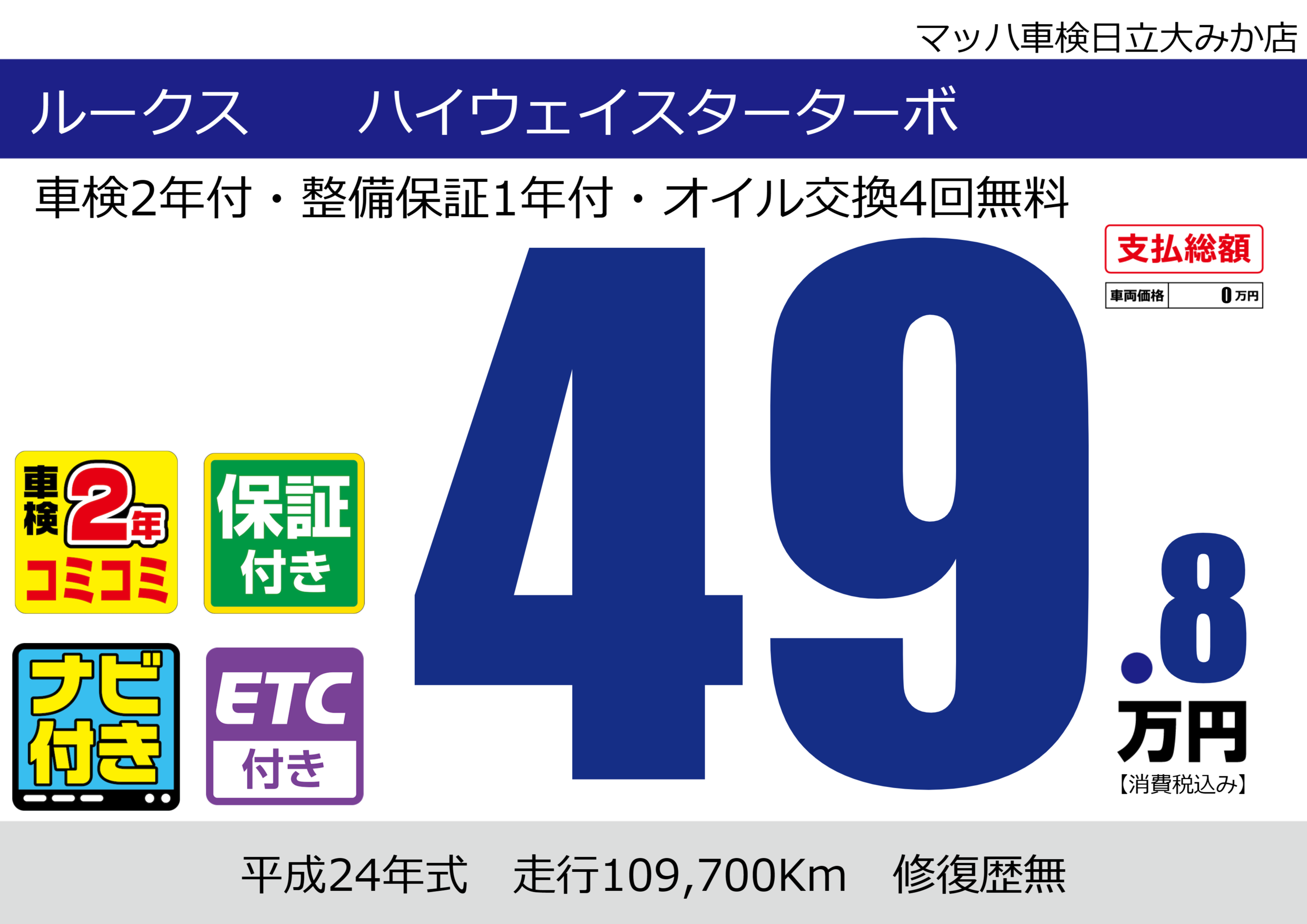 | 車名 | ルークス ハイウェイスターターボ | グレード ミッション 排気量 |