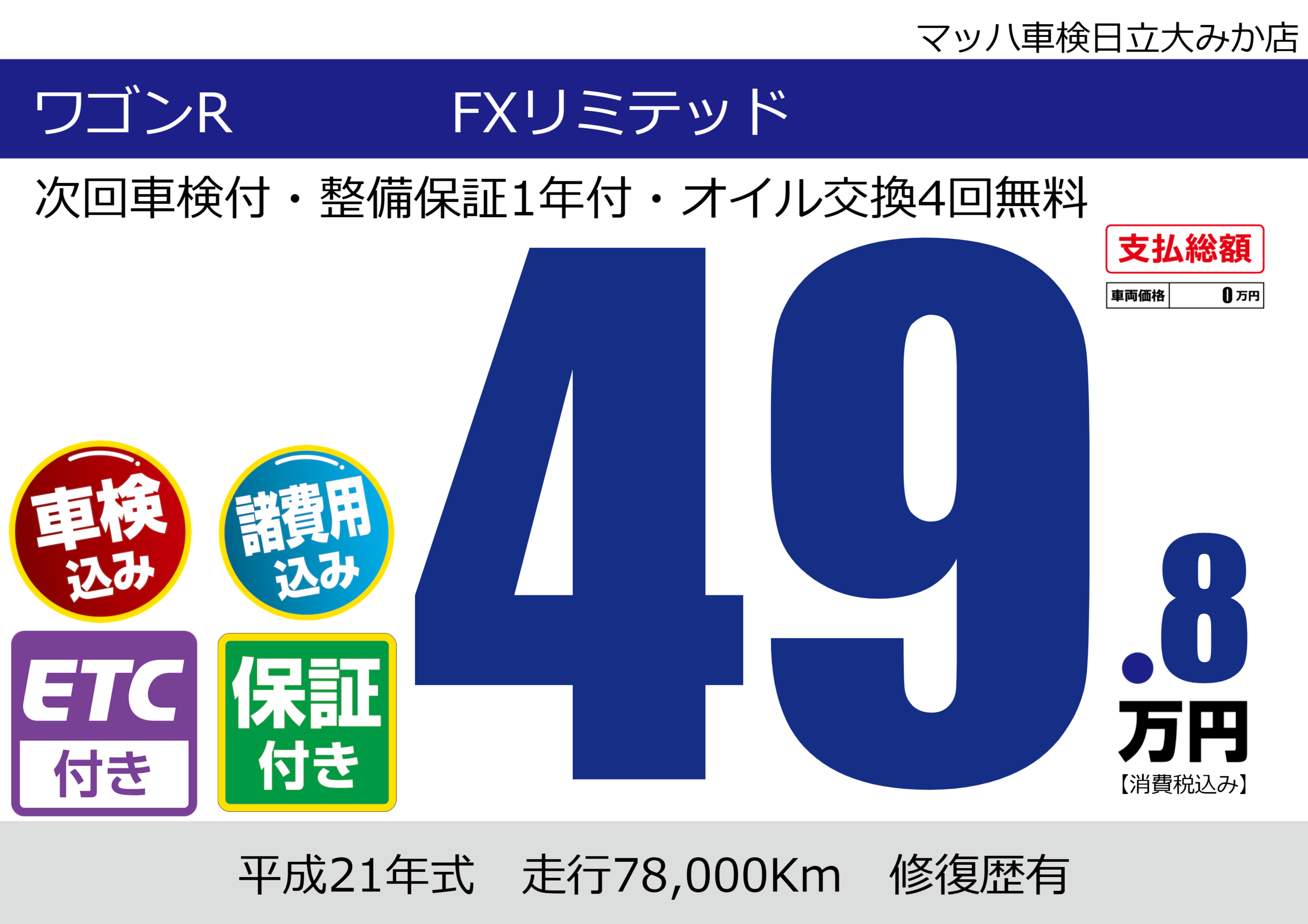 | 車名 | ワゴンR FXリミテッド | グレード ミッション 排気量 |