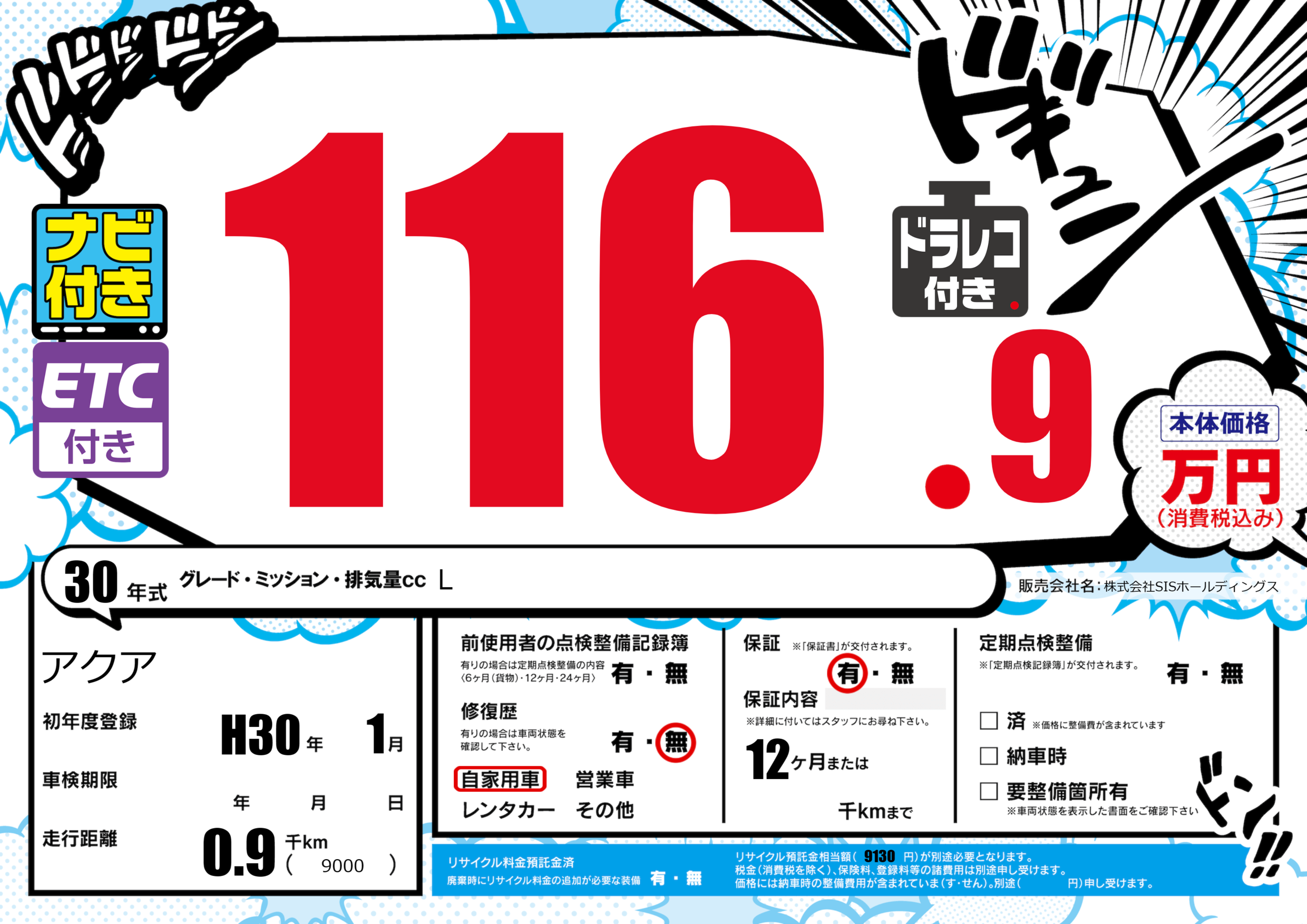 | 走行キロ | - | 初年度登録 | H30年1月 |