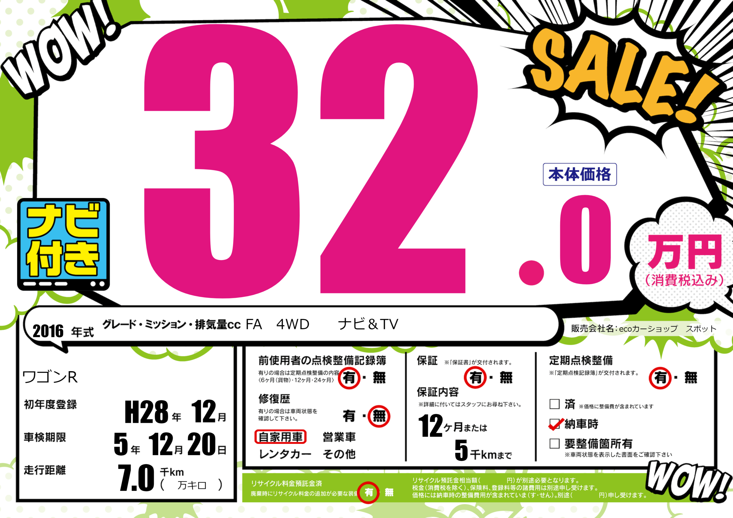 | 定期点検整備 | 定期点検整備あり 納車時あり | ||