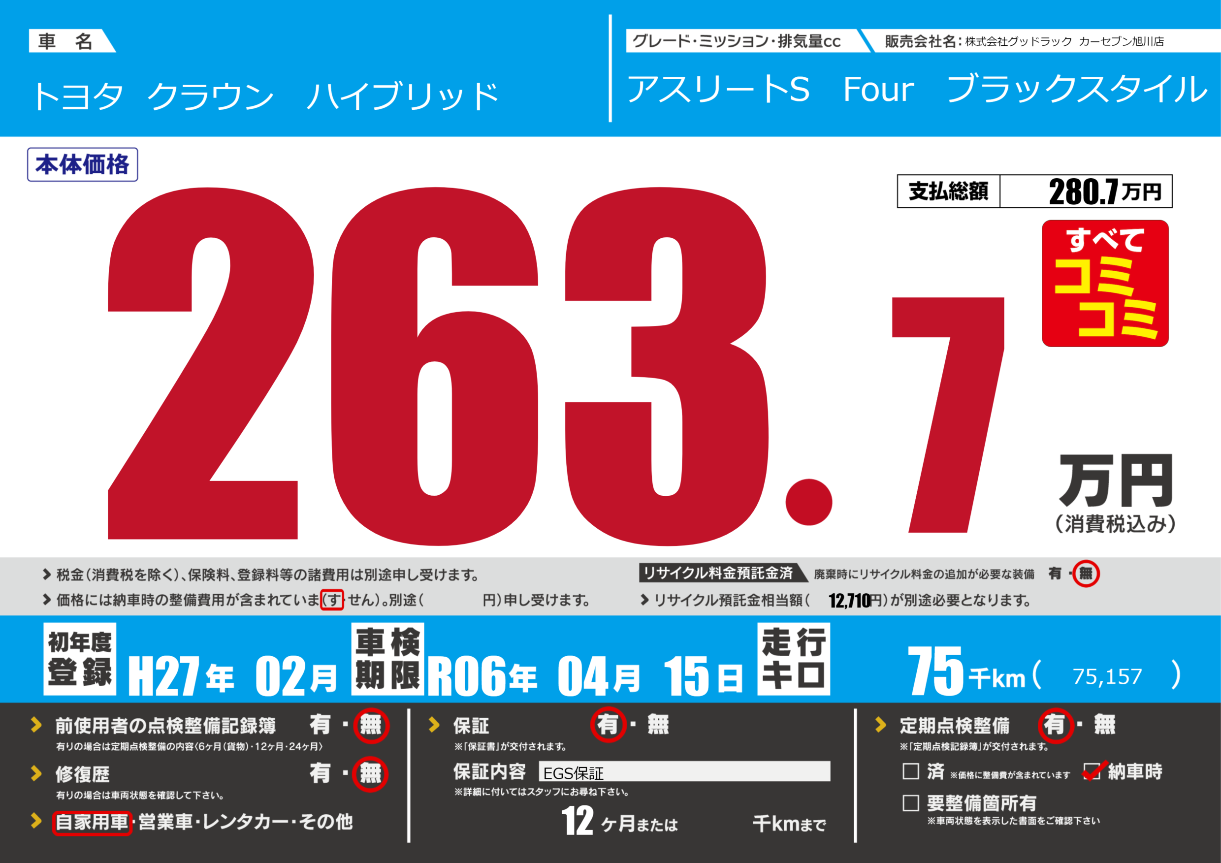 | 車名 | トヨタ クラウン ハイブリッド | グレード ミッション 排気量 |