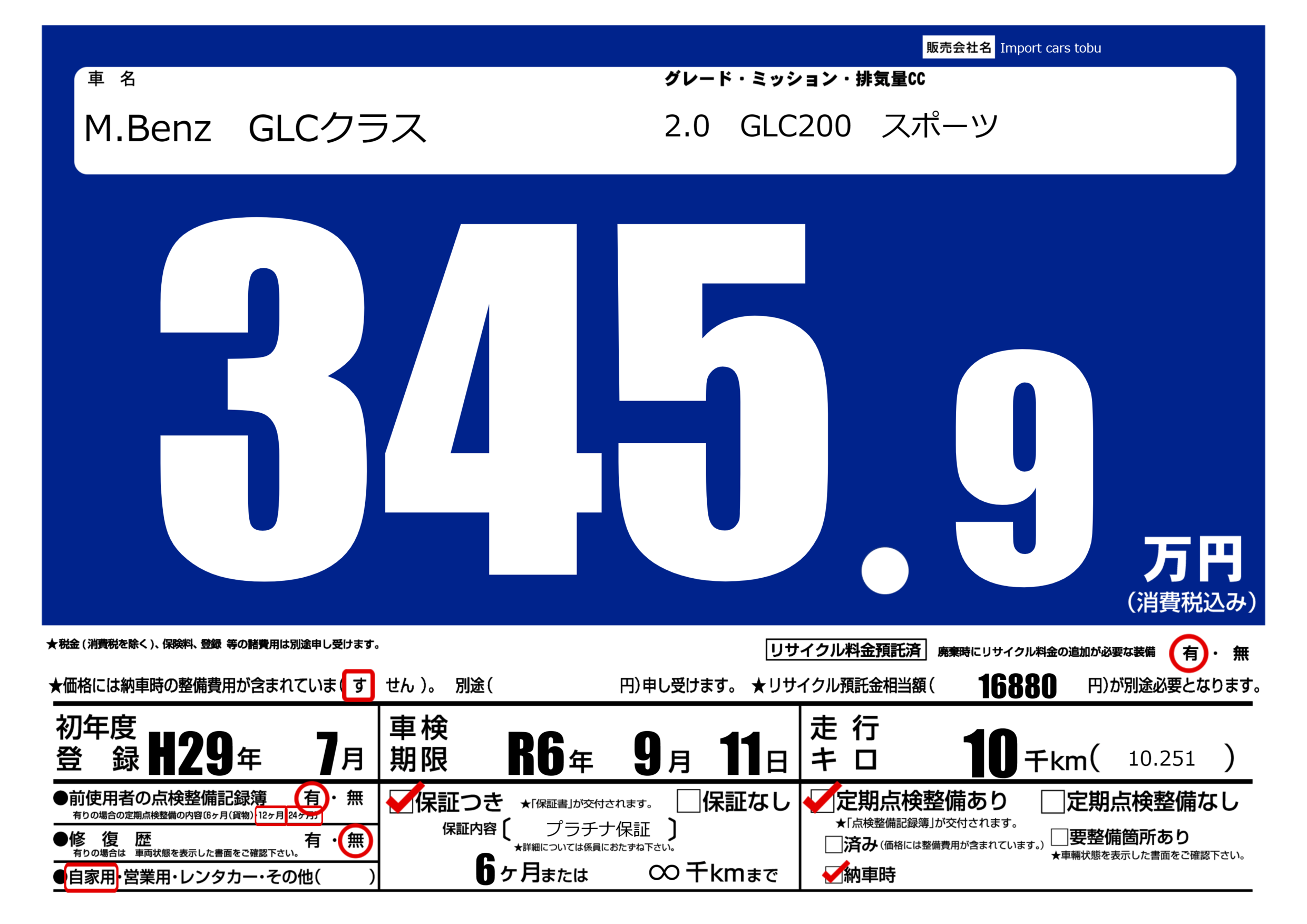 保証付き 保証内容( プラチナ保証) 6ヶ月または(∞)千kmまで |
