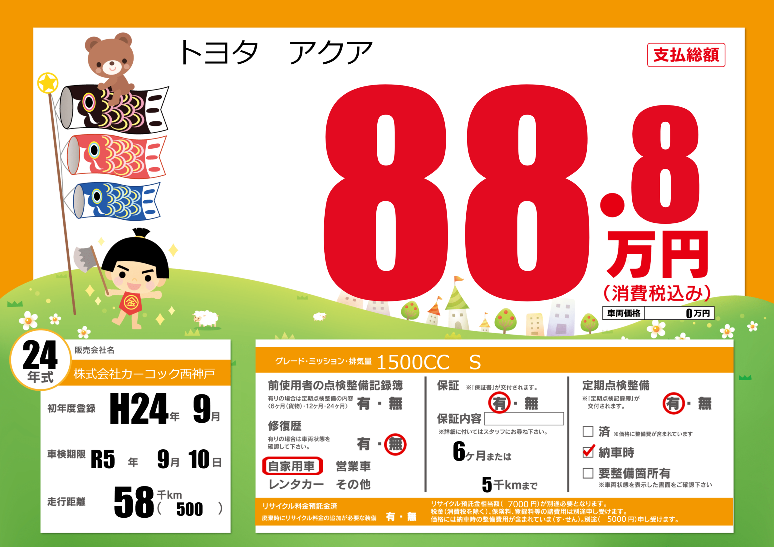 | 定期点検整備 | 定期点検整備あり 納車時あり | ||