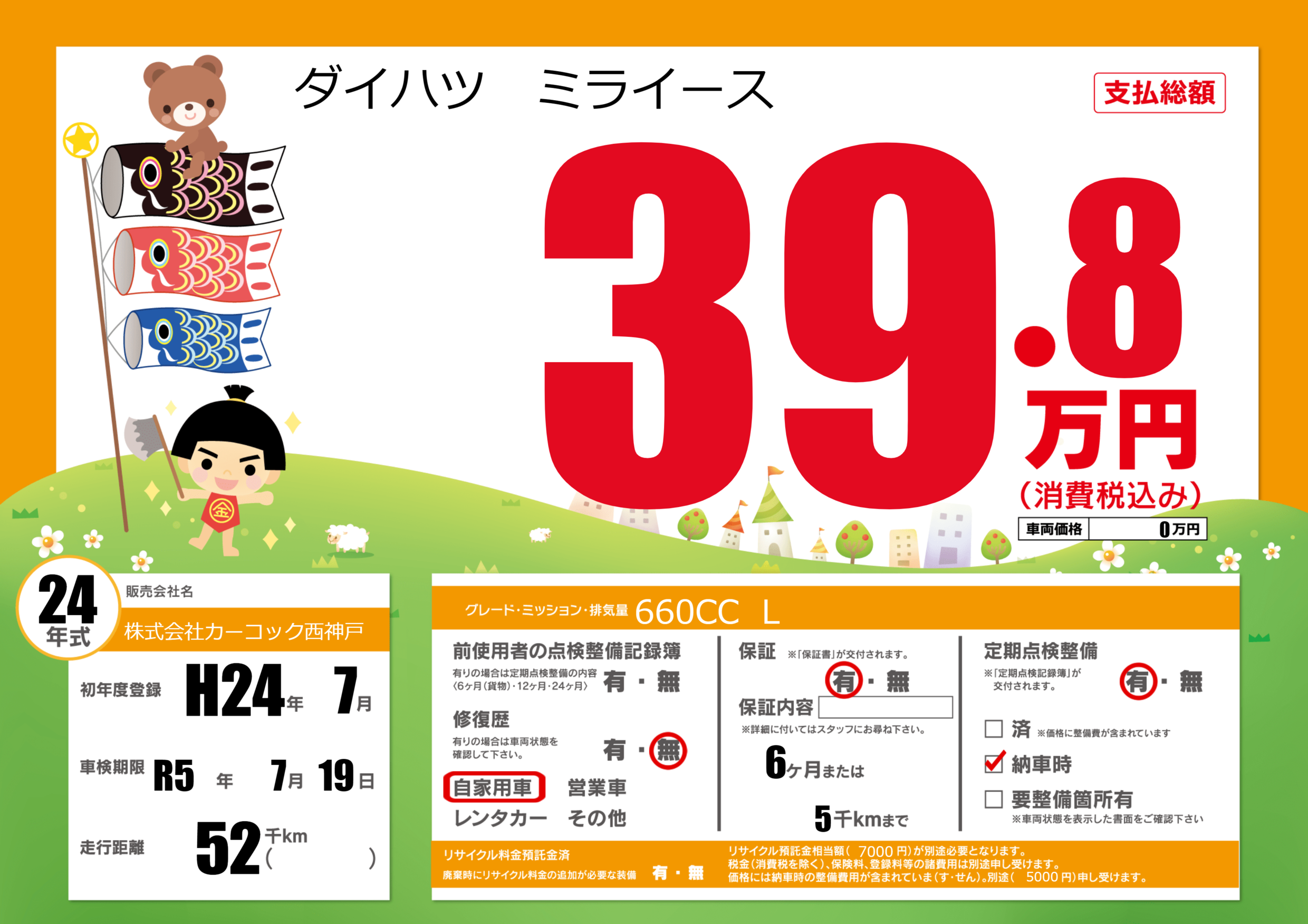 | 定期点検整備 | 定期点検整備あり 納車時あり | ||