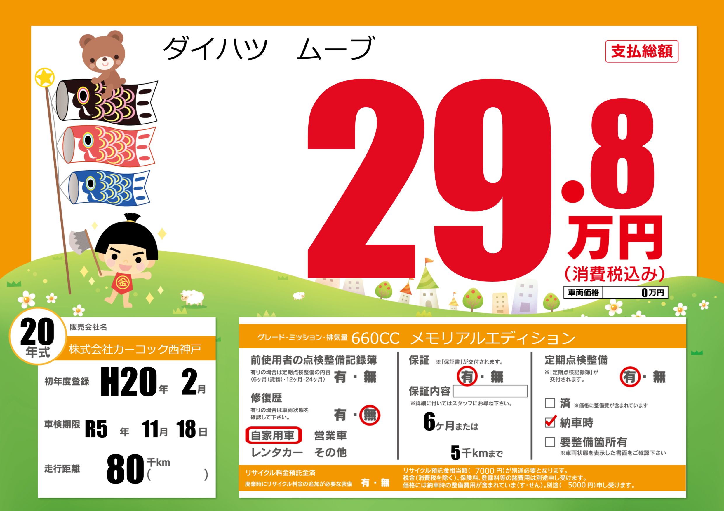 | 定期点検整備 | 定期点検整備あり 納車時あり | ||