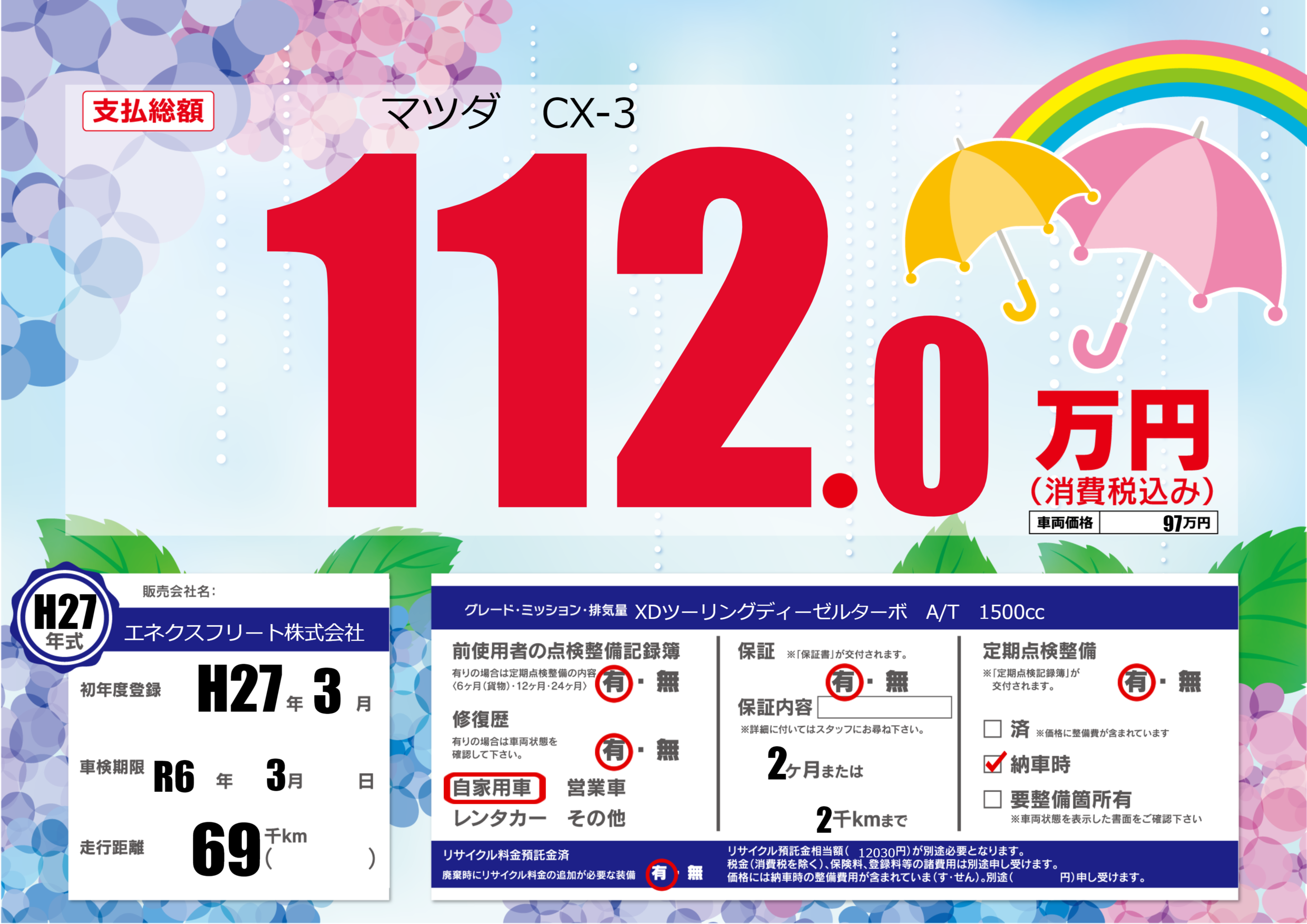 | 車検制限 | R6年 3月 - 日 | ||