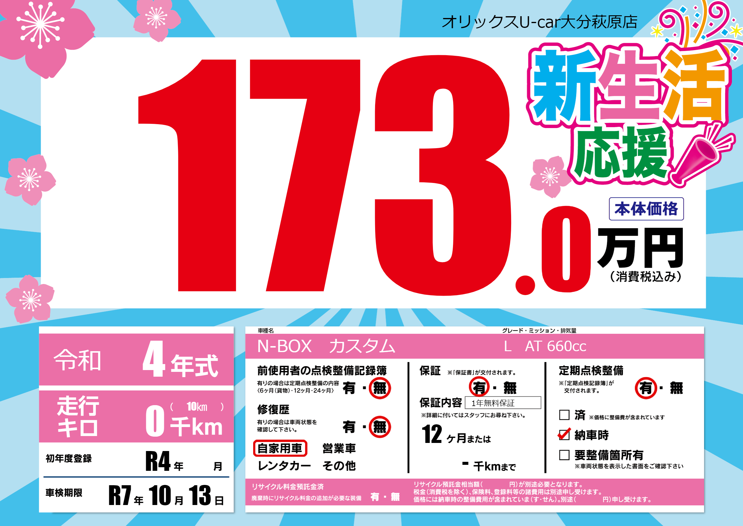 | 走行キロ | - | 初年度登録 | R4年---月 |