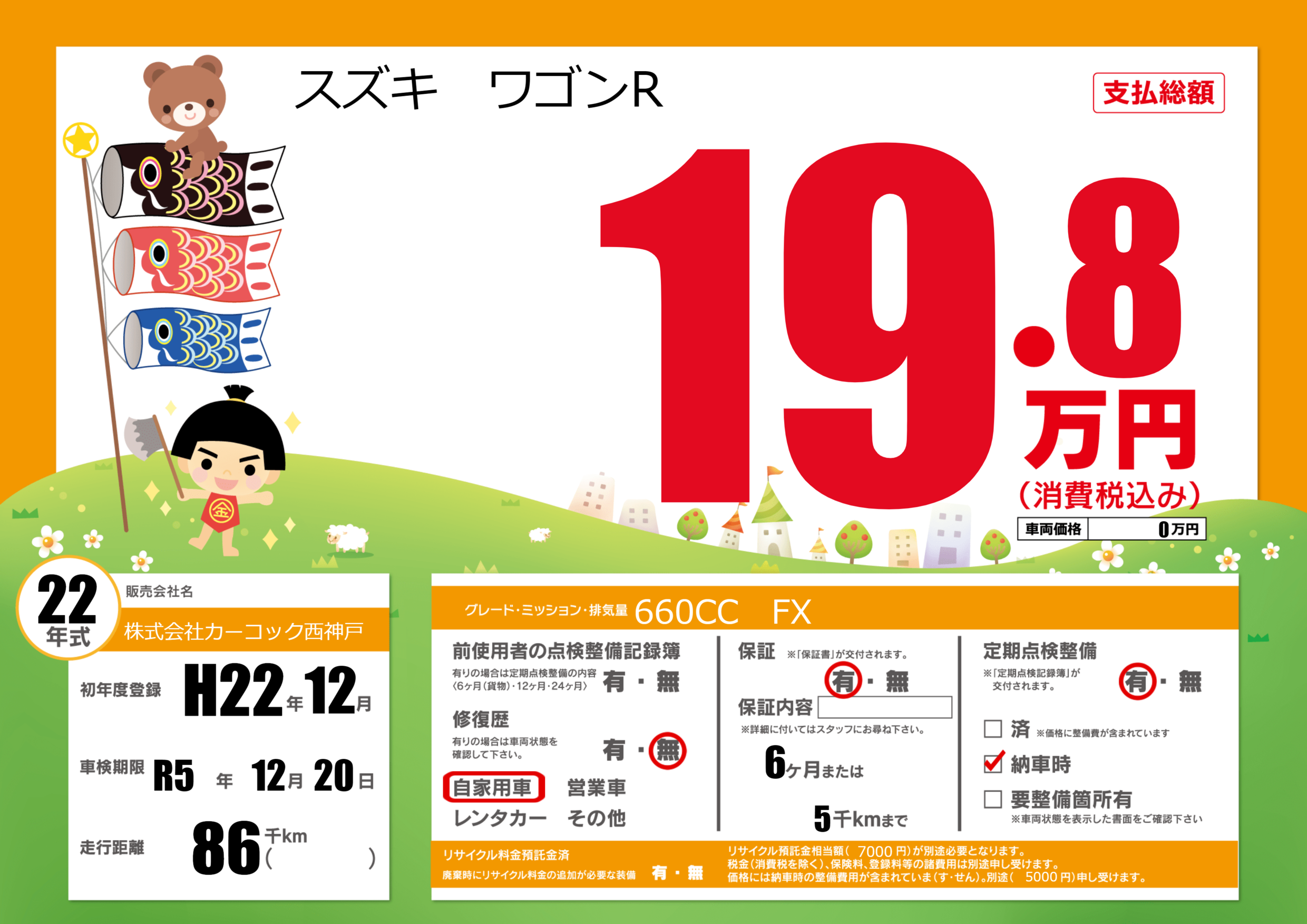 | 定期点検整備 | 定期点検整備あり 納車時あり | ||