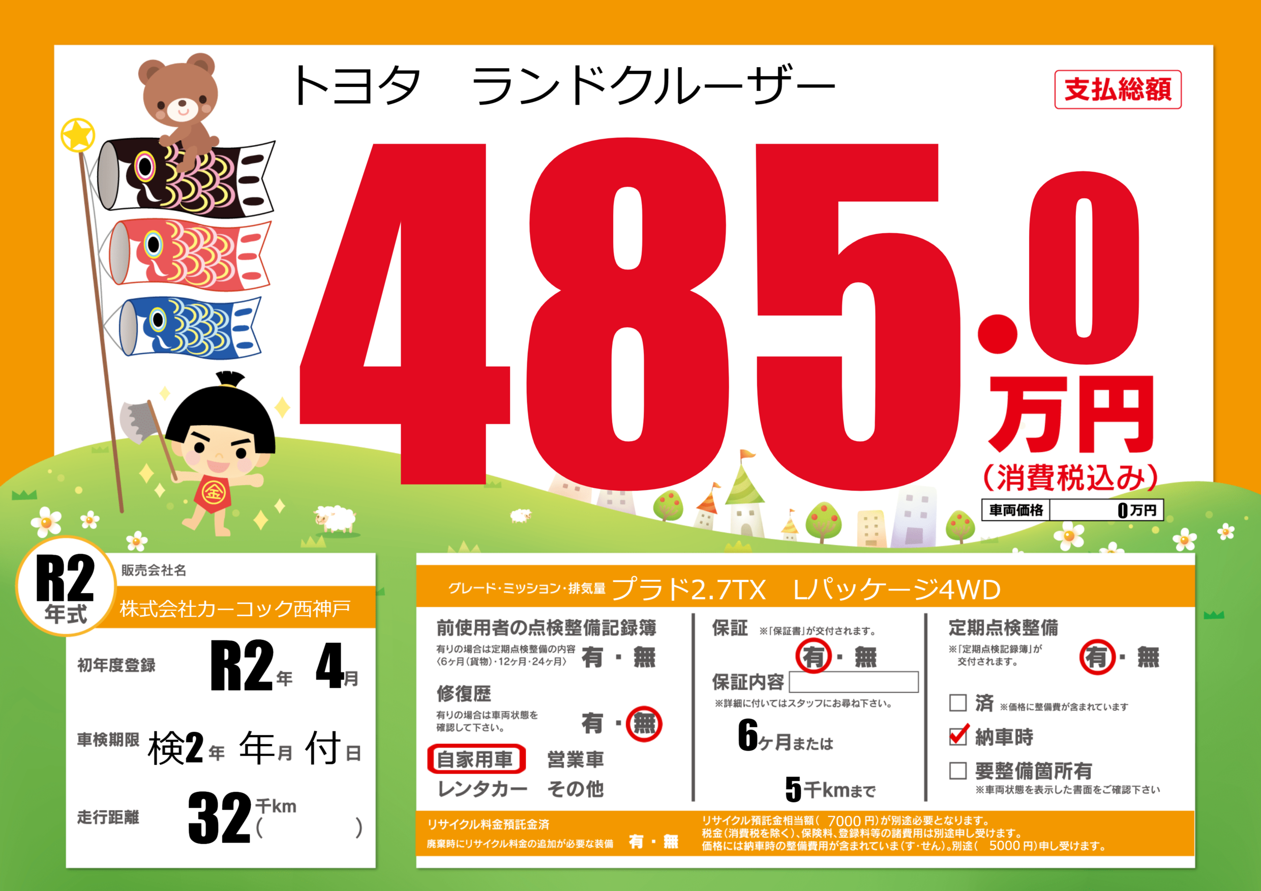 | 車名 | トヨタ ランドクルーザー | グレード ミッション 排気量 |