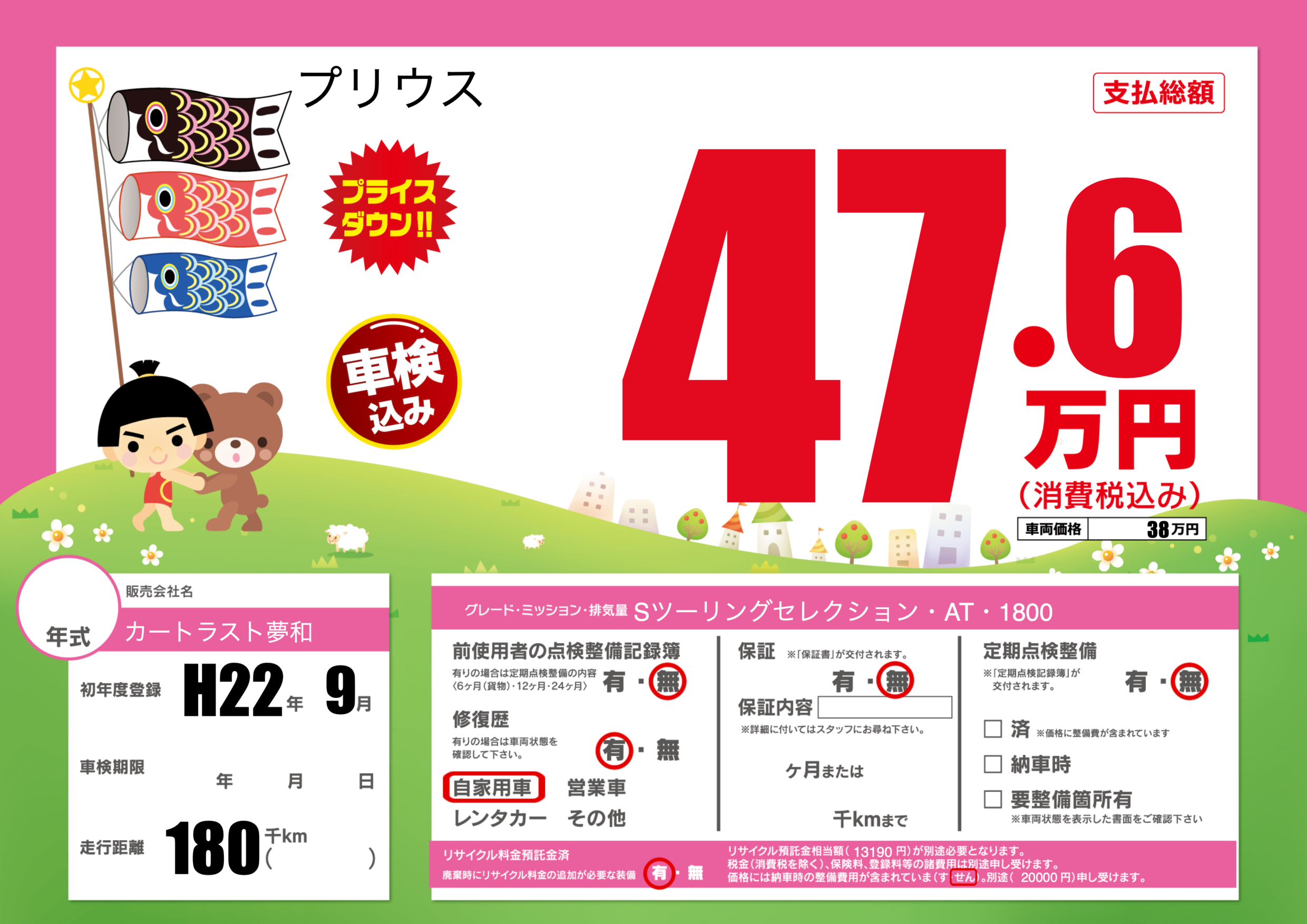 | 車名 | プリウス | グレード ミッション 排気量 |