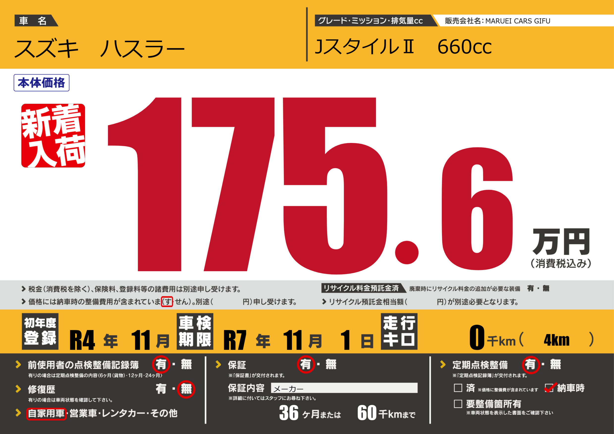 | 走行キロ | - | 初年度登録 | R4年11月 |