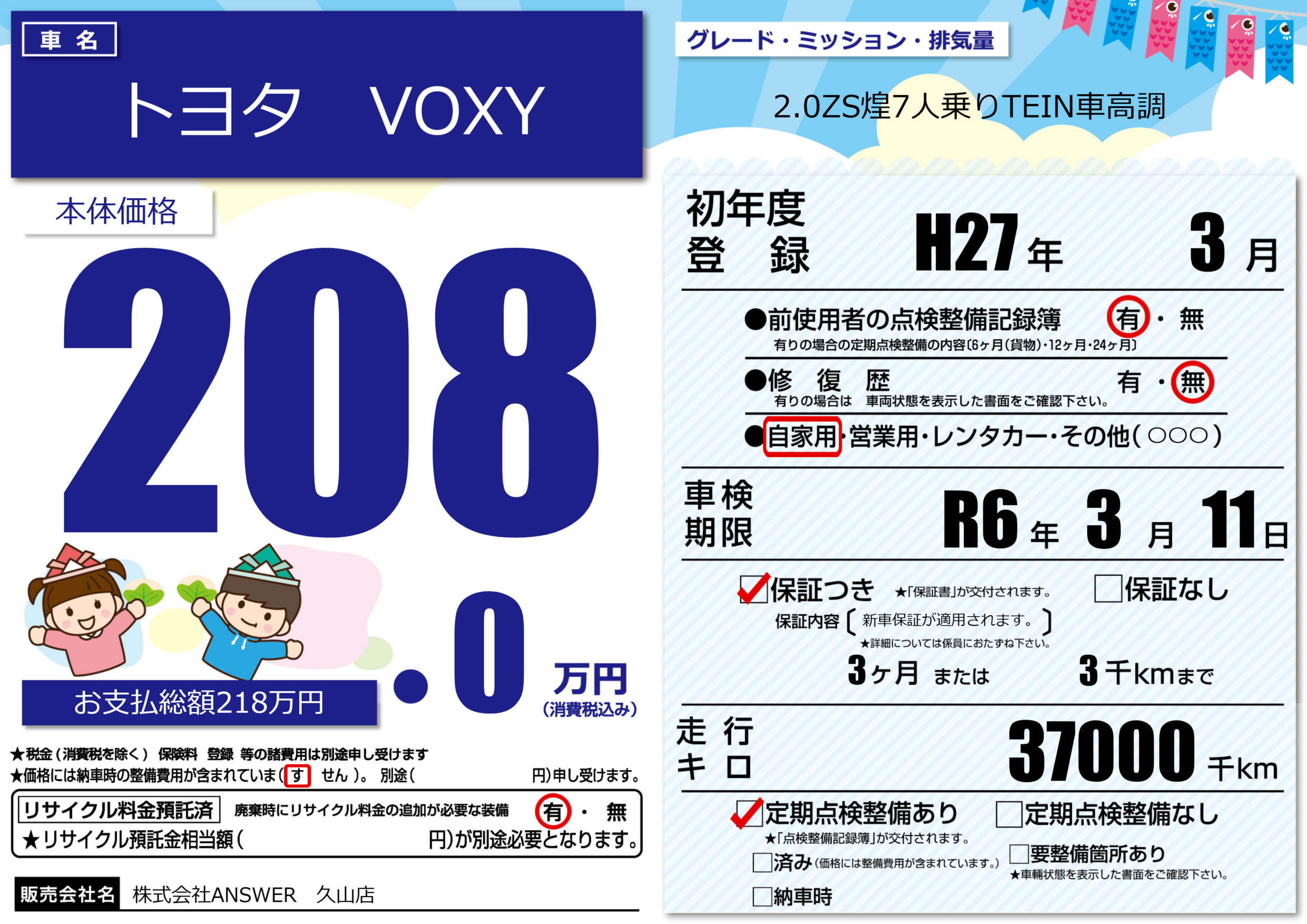 | 車検制限 | R6年 3月 11日 | ||