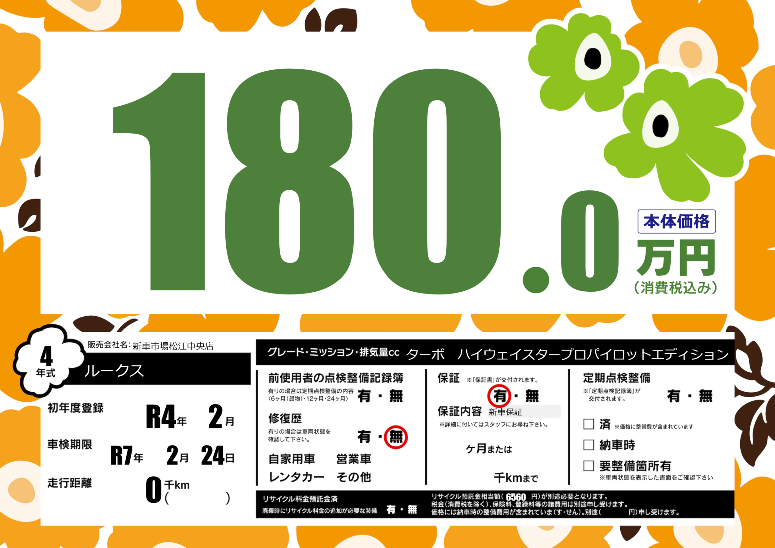 | 車名 | ルークス | グレード ミッション 排気量 |