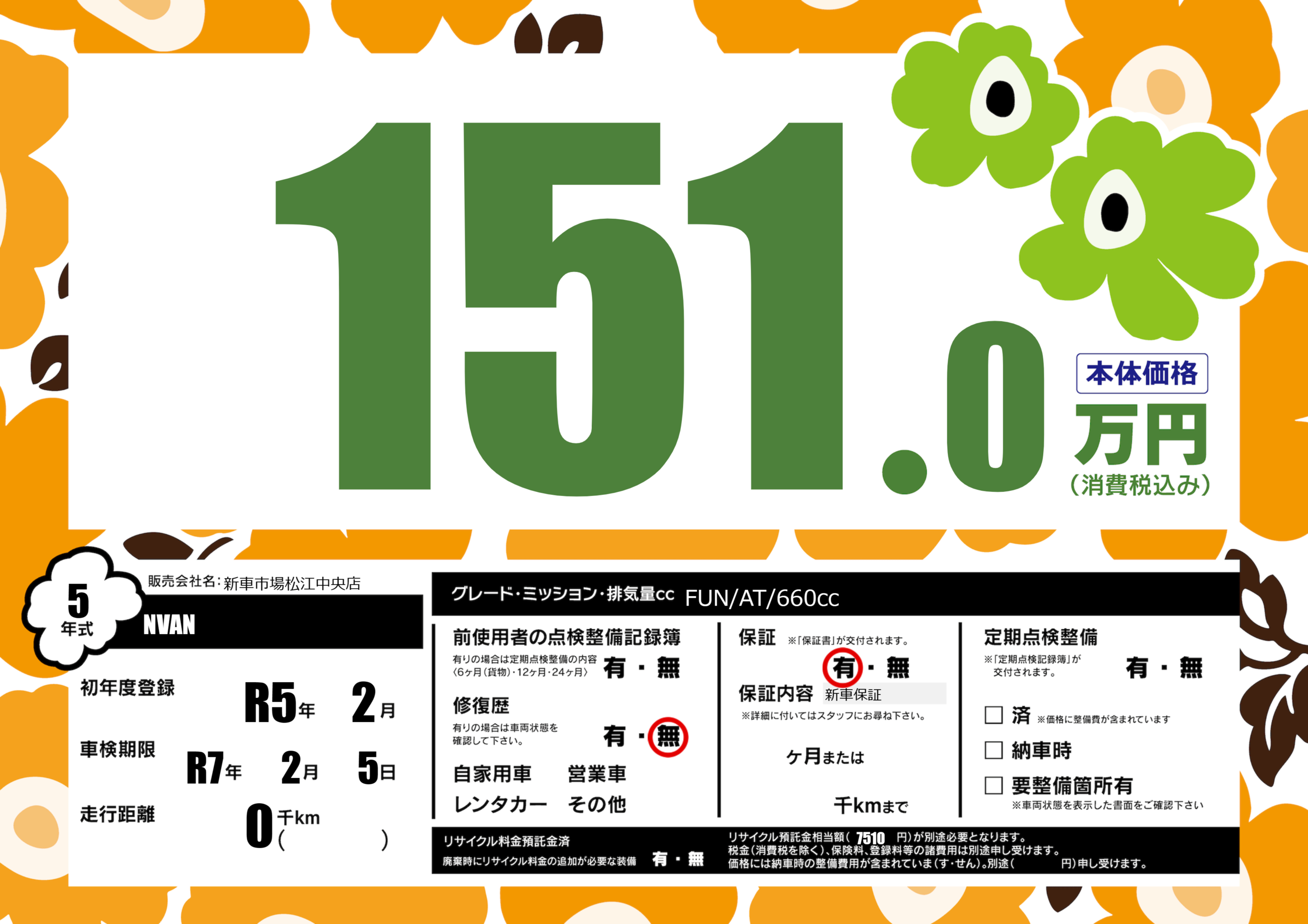 | 車名 | NVAN | グレード ミッション 排気量 |