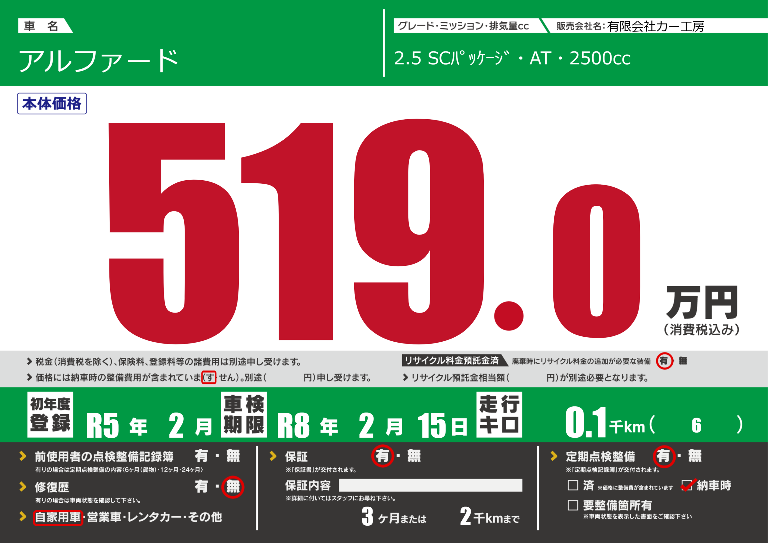 | 走行キロ | - | 初年度登録 | R5年2月 |