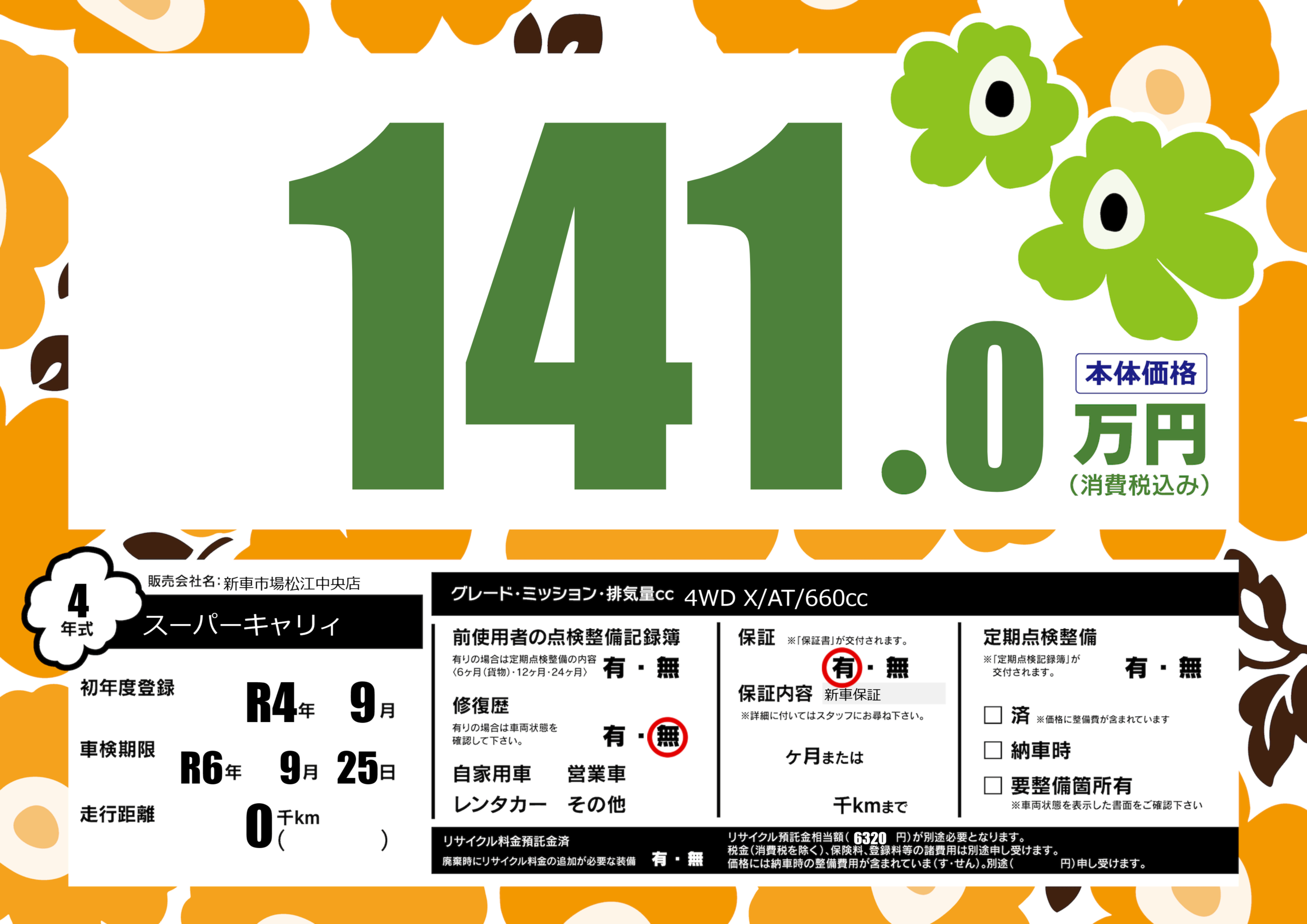 | 車名 | スーパーキャリィ | グレード ミッション 排気量 |
