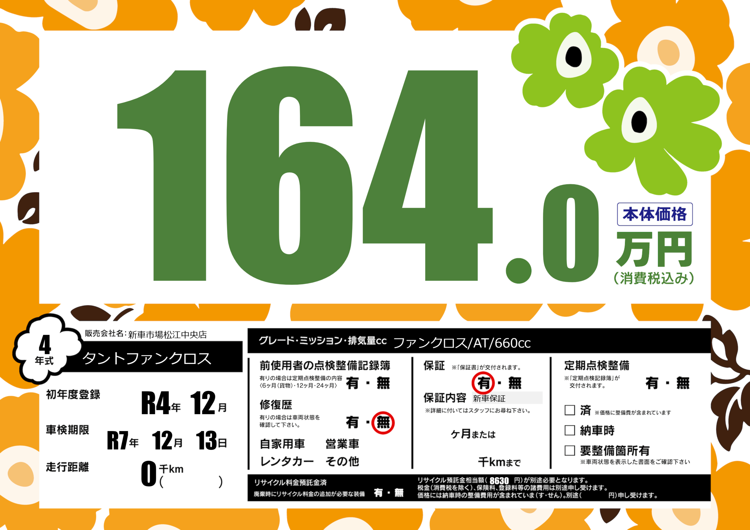 | 走行キロ | - | 初年度登録 | R4年12月 |