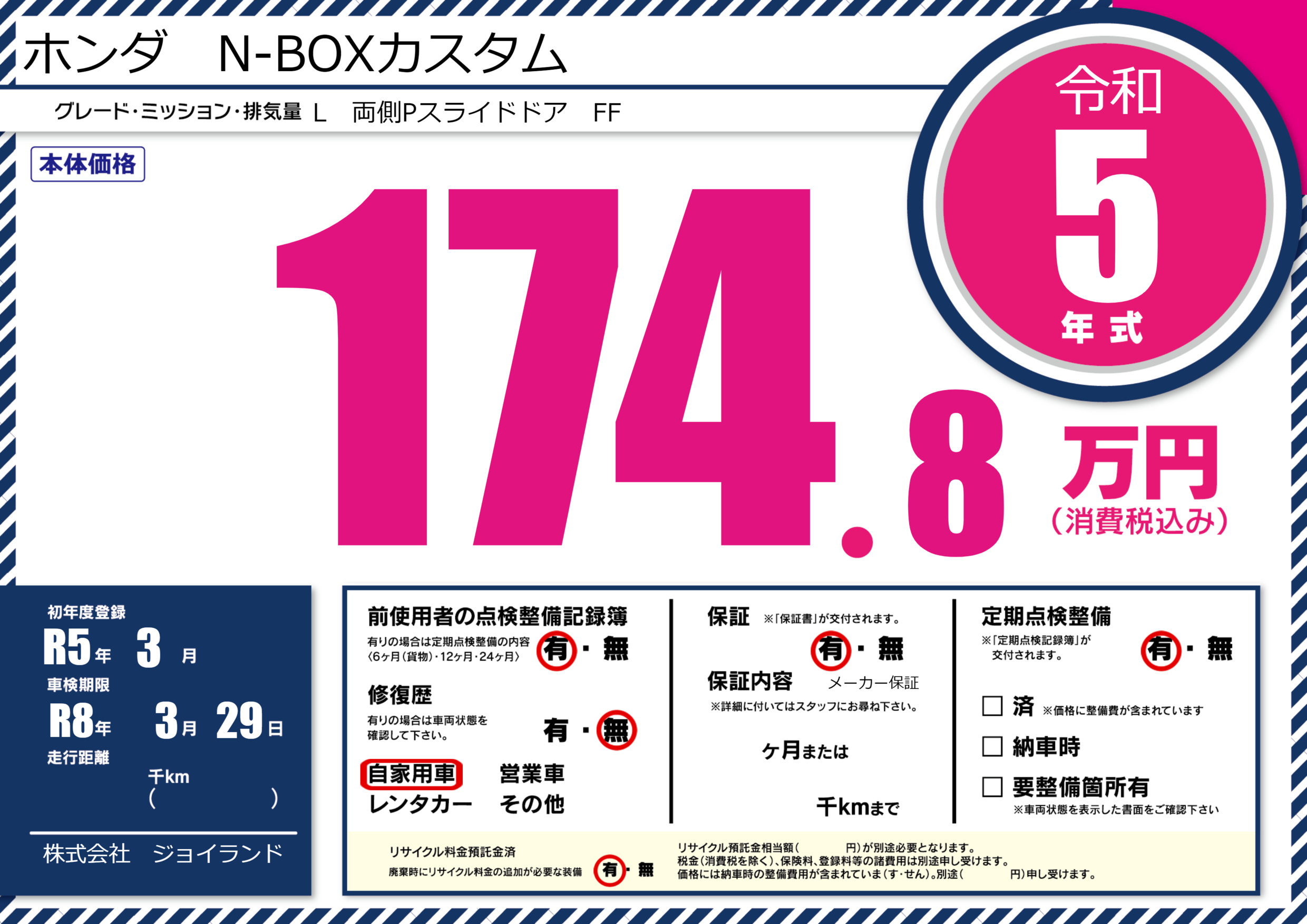 車検制限 R8年 3月 29日
