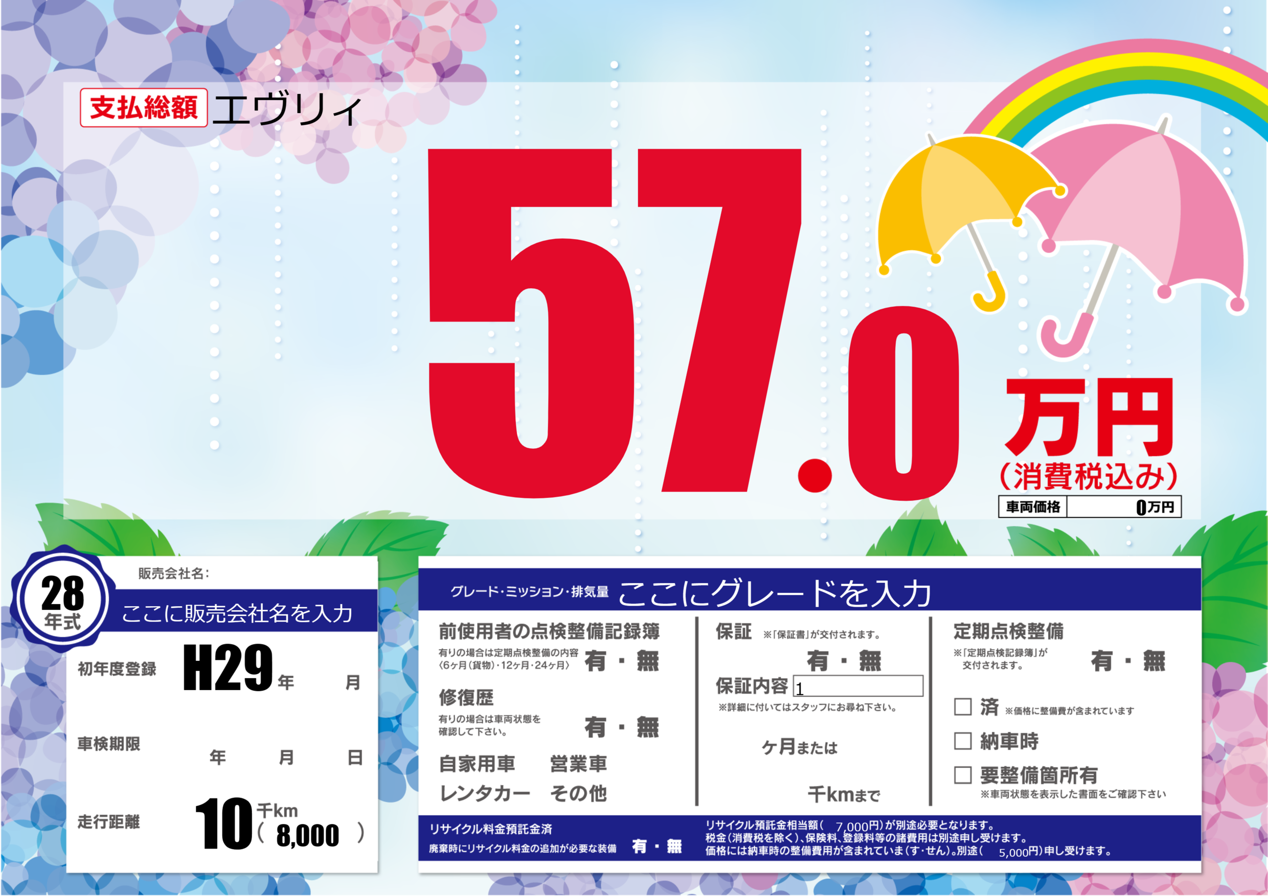 | 車名 | エヴリィ | グレード ミッション 排気量 |