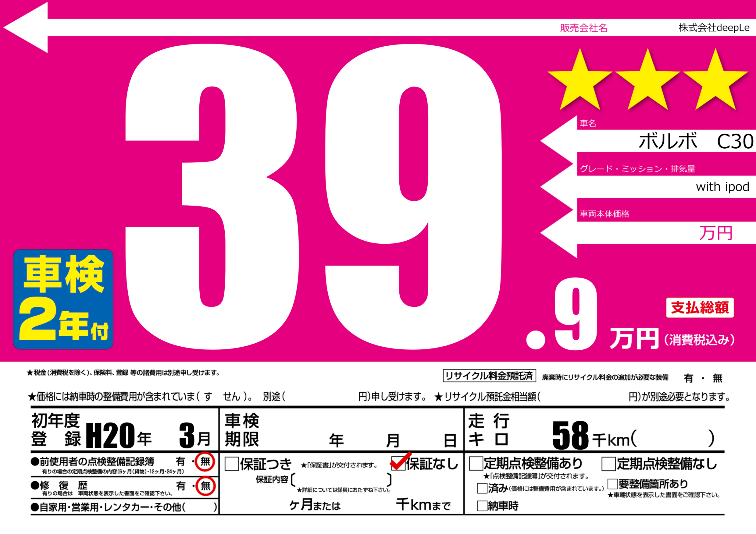 | 初年度登録 | H20年3月 | ||