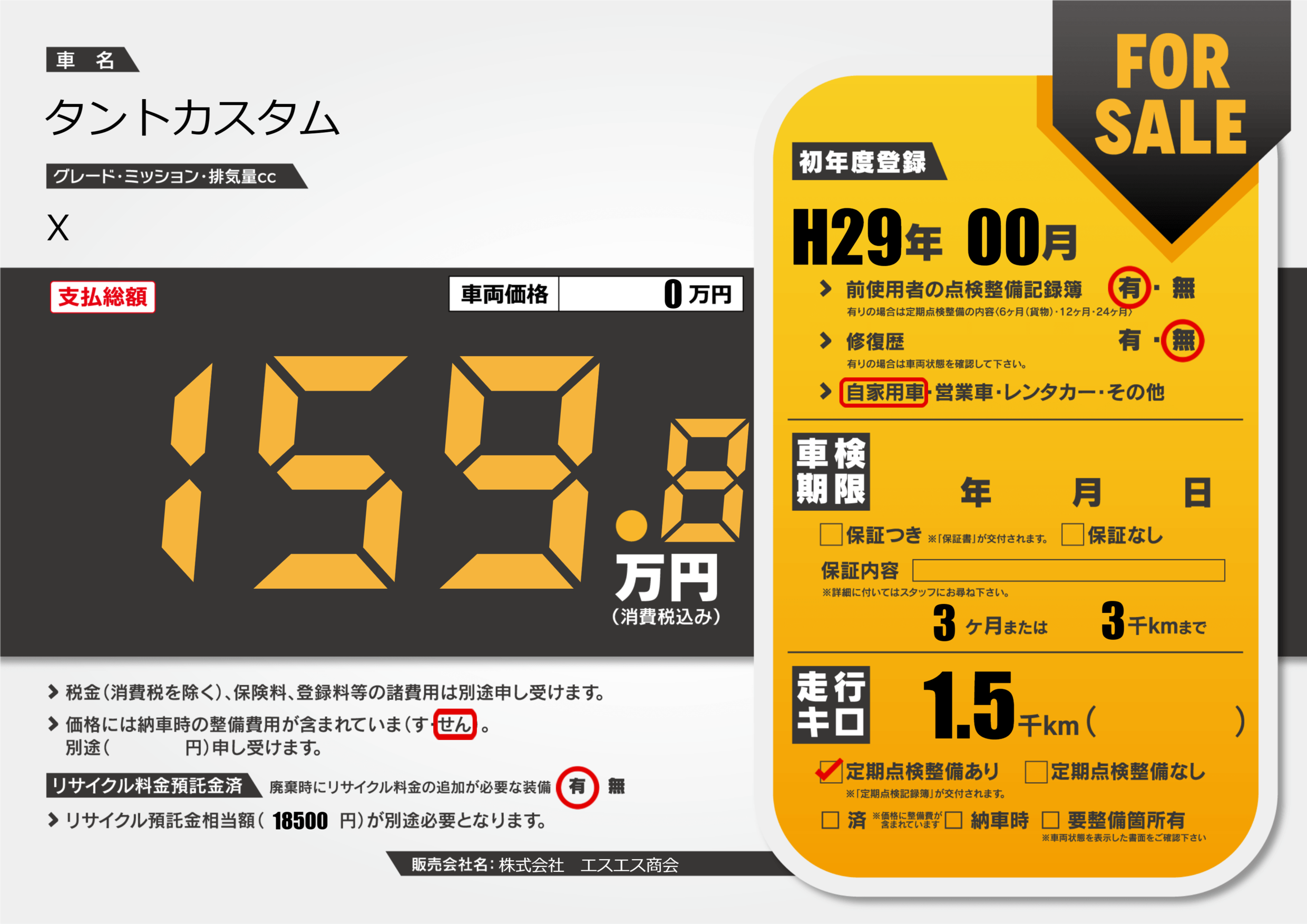 | 車名 | タントカスタム | グレード ミッション 排気量 |