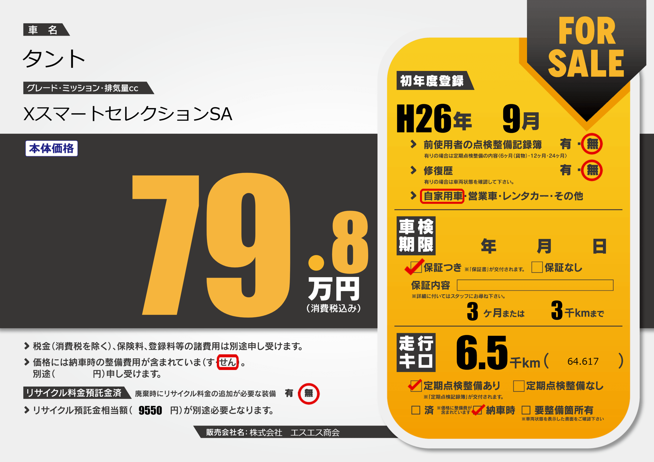 | 走行キロ | 0.6万km | 初年度登録 | H26年9月 |
