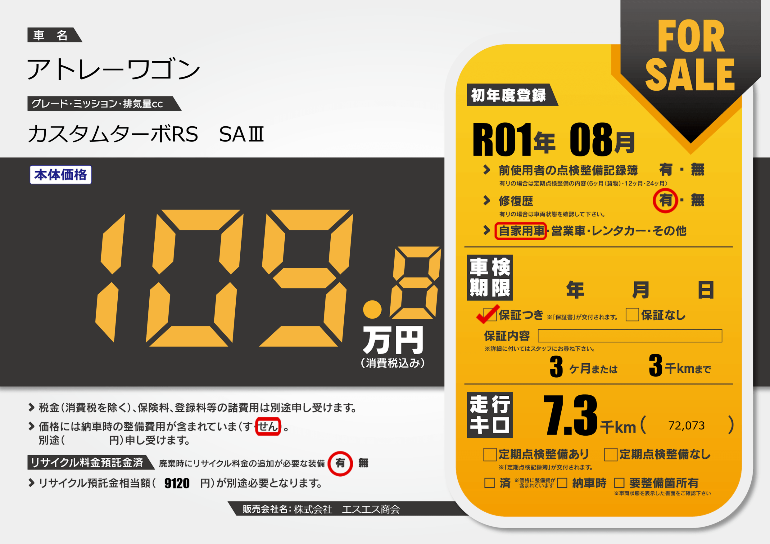| 車名 | アトレーワゴン | グレード ミッション 排気量 |