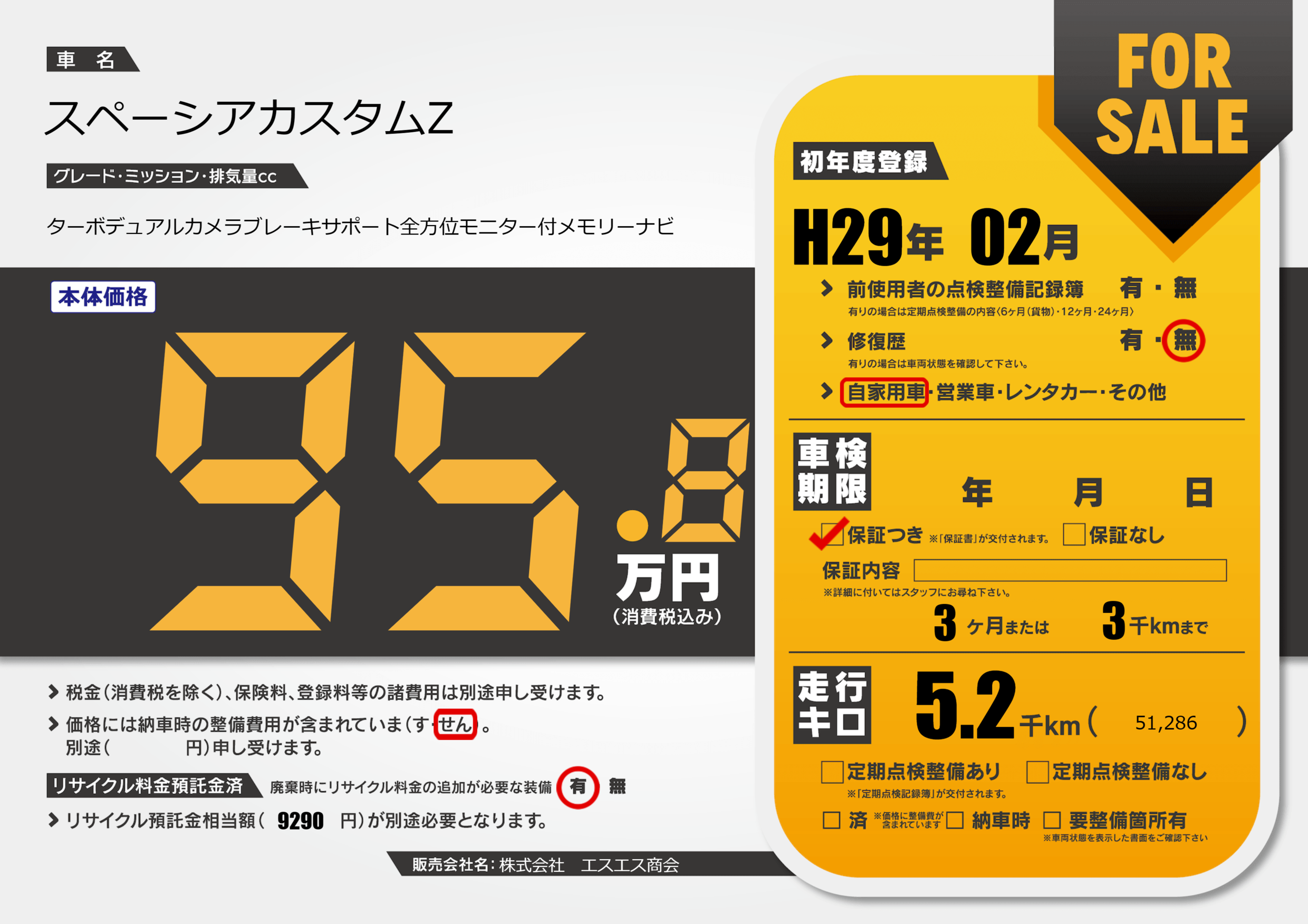 保証付き 保証内容(---) 3ヶ月または(3)千kmまで |