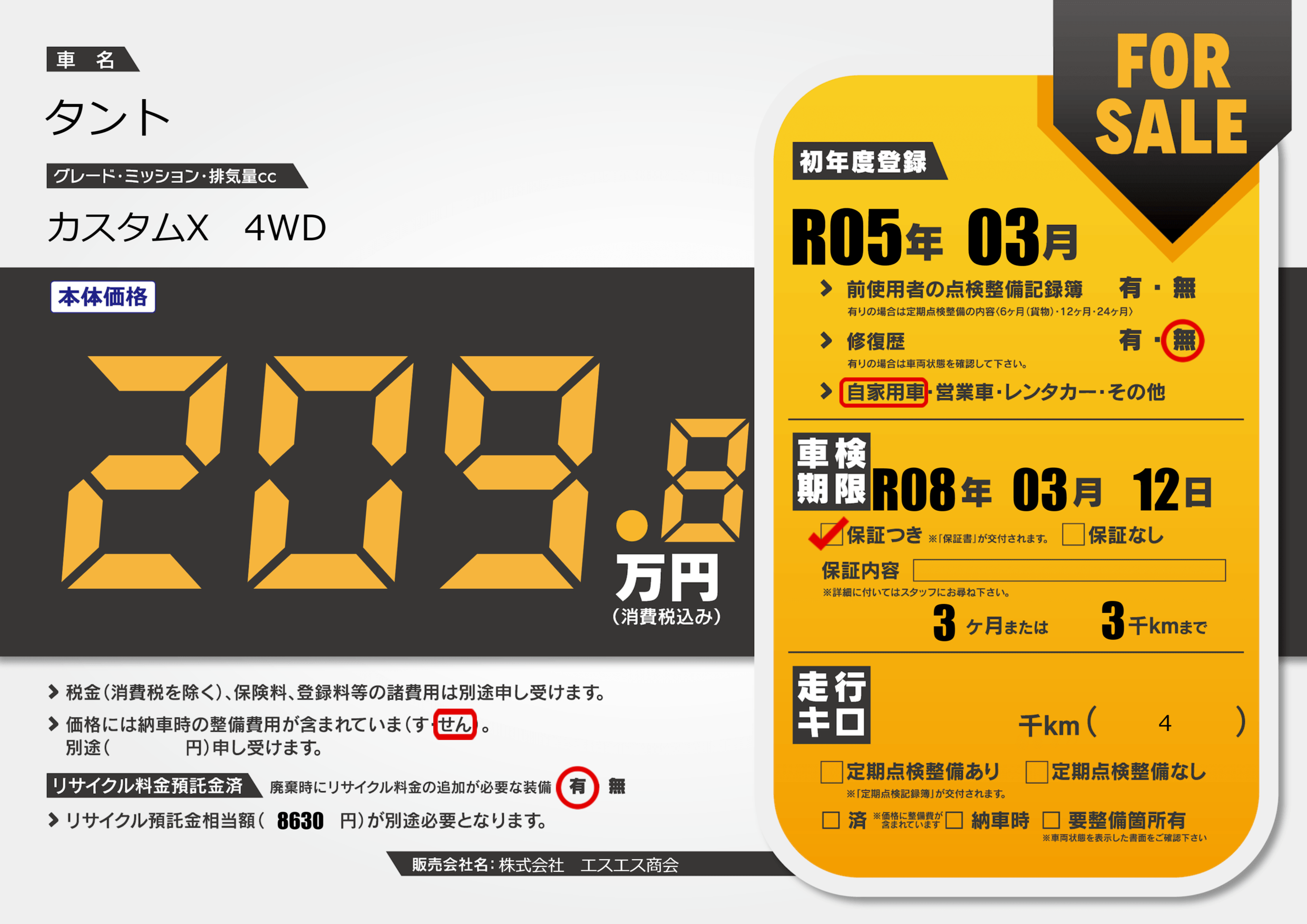 | 走行キロ | - | 初年度登録 | R05年03月 |