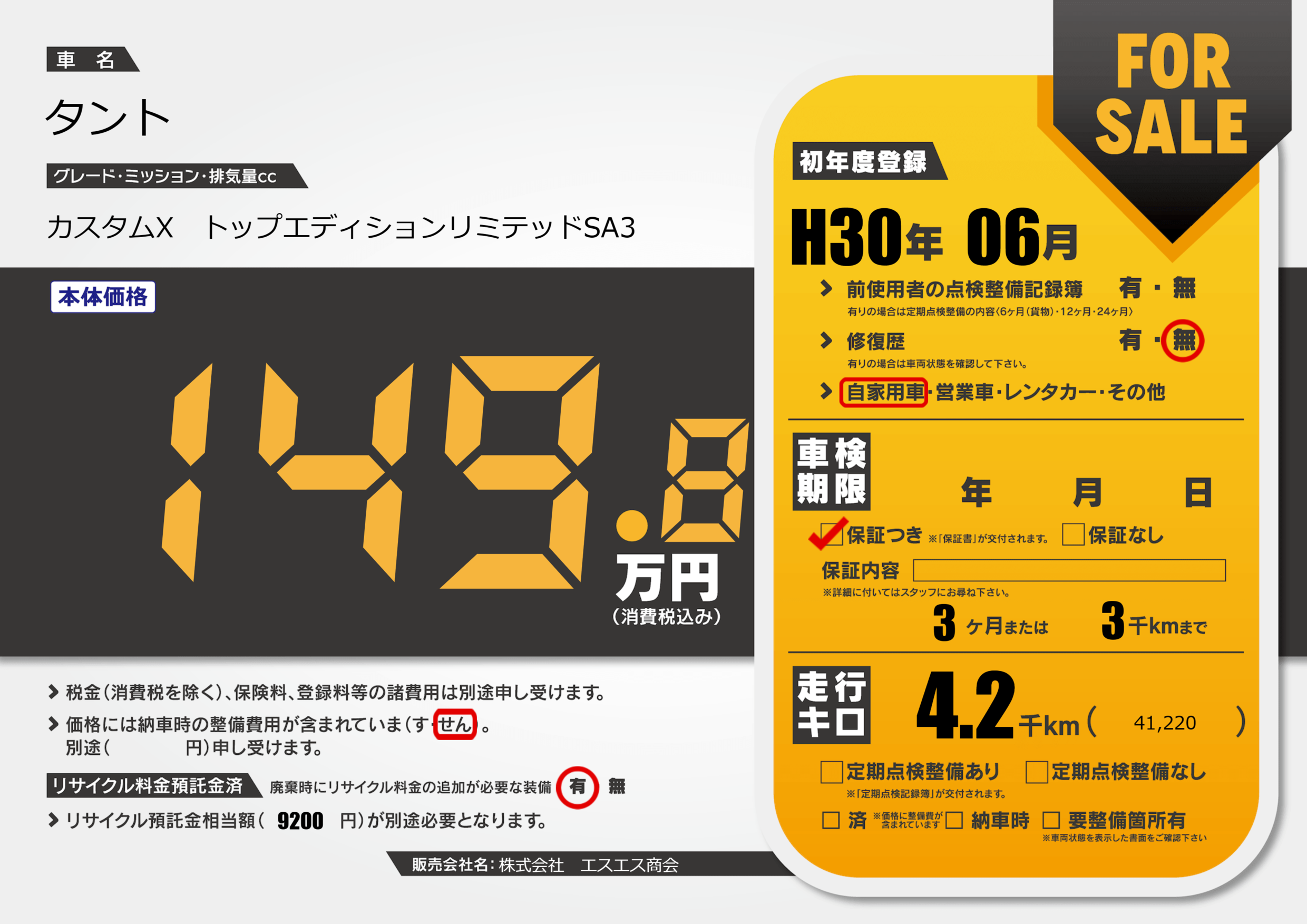 | 走行キロ | 0.4万km | 初年度登録 | H30年06月 |