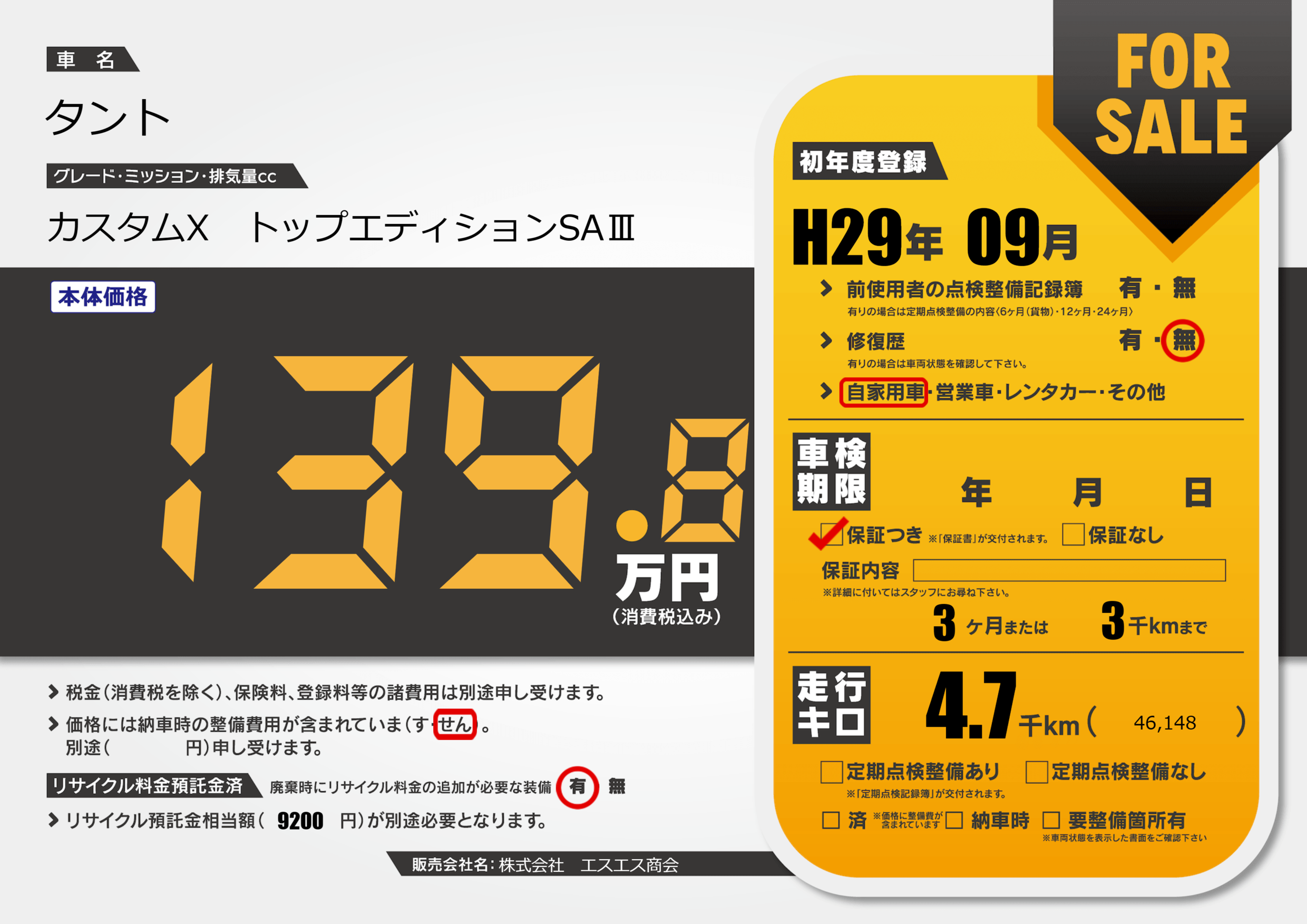 | 走行キロ | 0.4万km | 初年度登録 | H29年09月 |