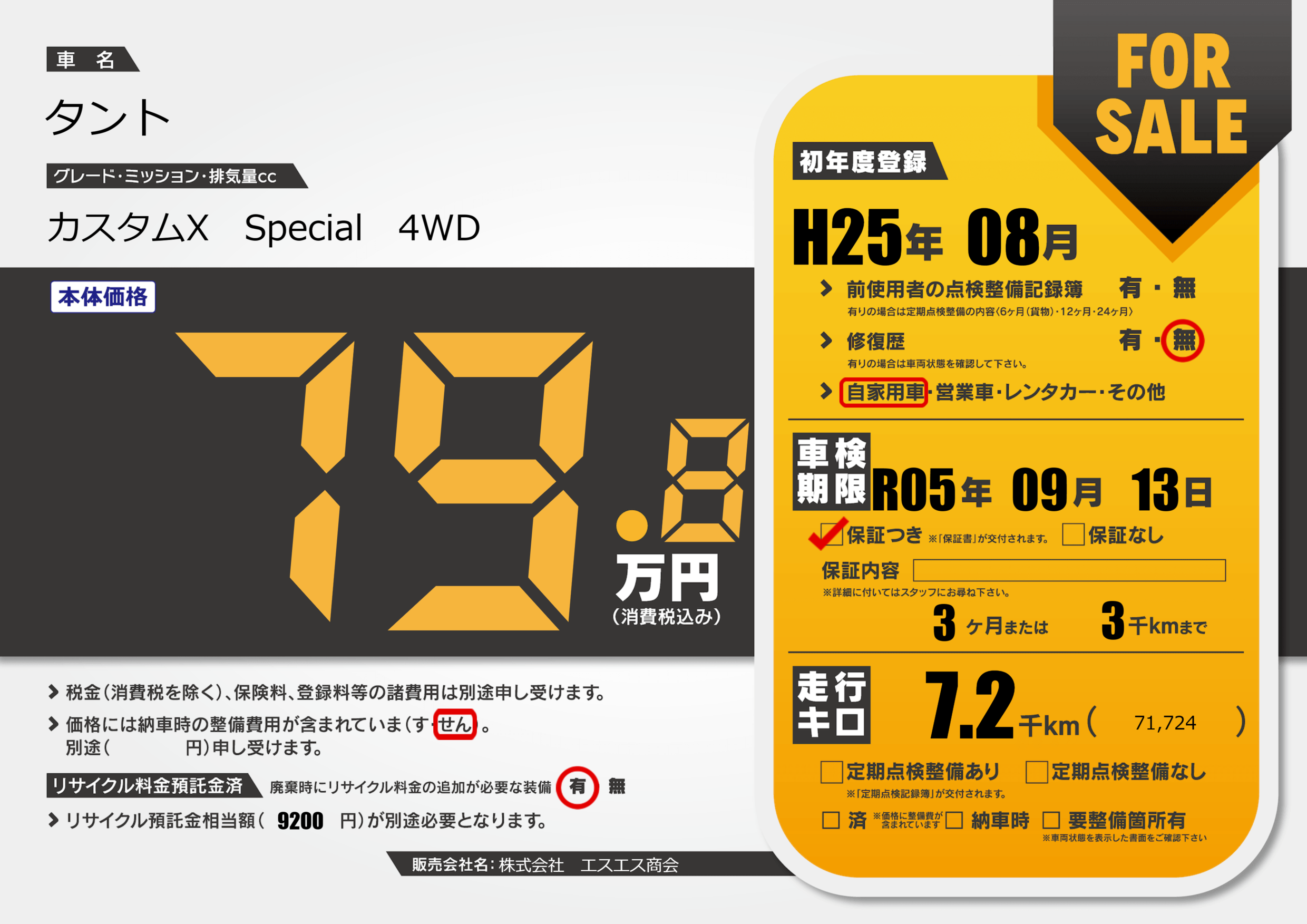 | 走行キロ | 0.7万km | 初年度登録 | H25年08月 |