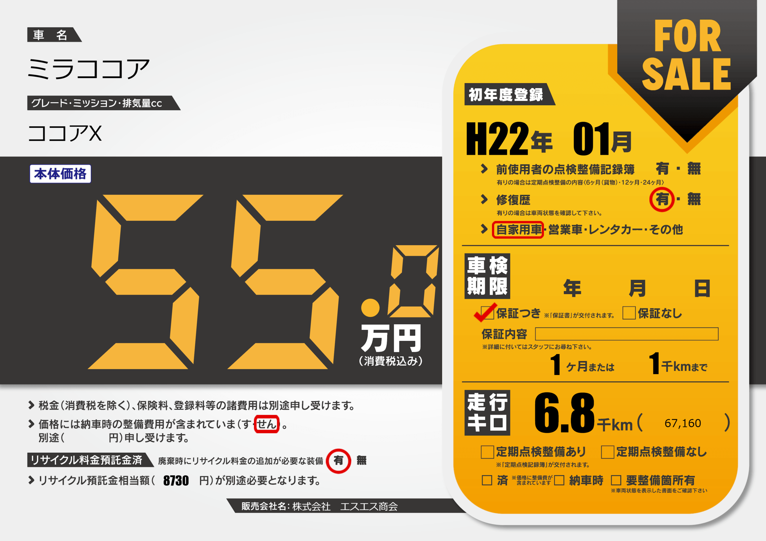 | 車名 | ミラココア | グレード ミッション 排気量 |