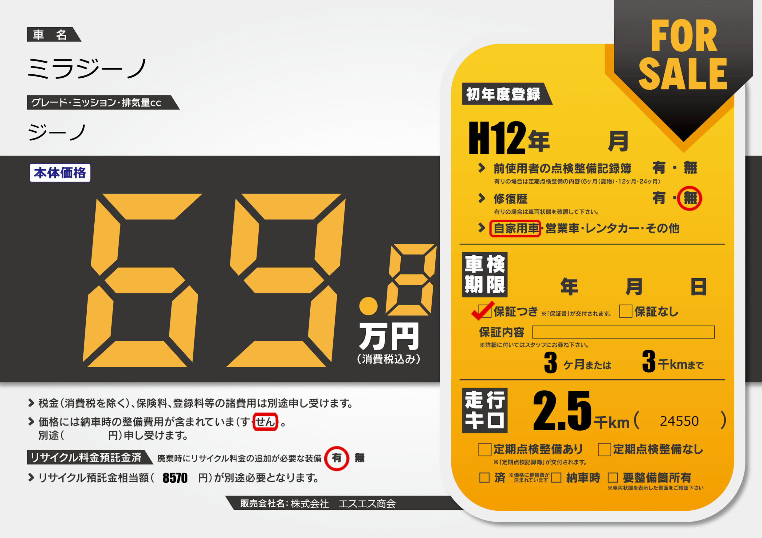 保証付き 保証内容(---) 3ヶ月または(3)千kmまで |