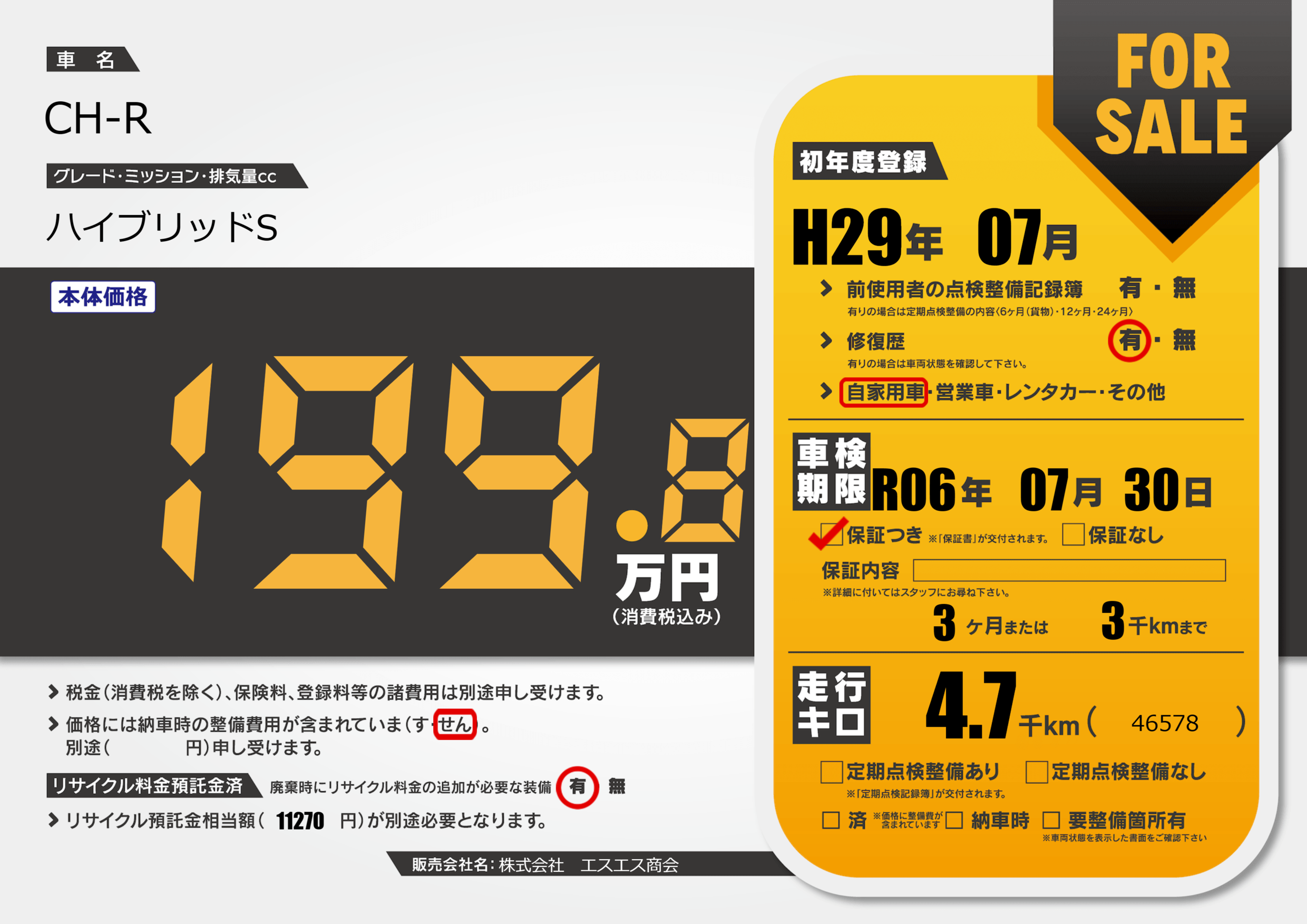 | 車名 | CH-R | グレード ミッション 排気量 |
