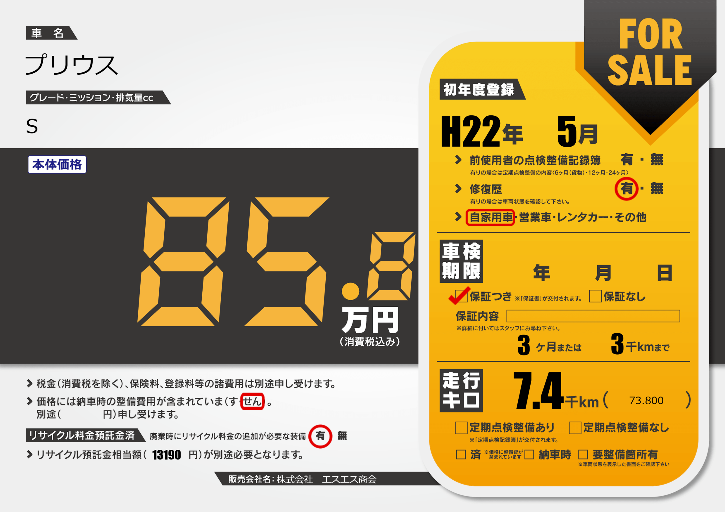 保証付き 保証内容(---) 3ヶ月または(3)千kmまで |