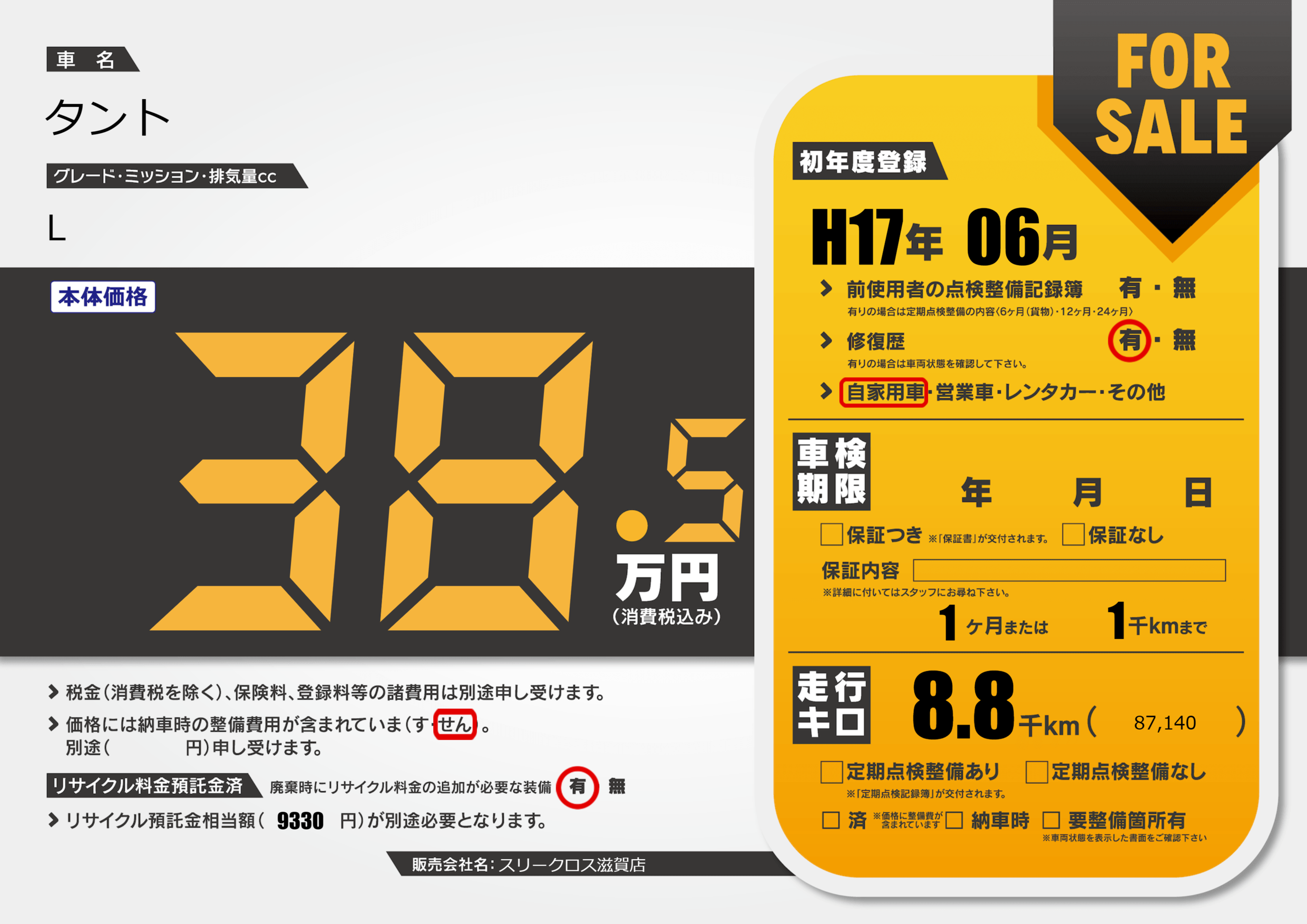 あり | リサイクル預託金相当額 | ( 1円)が別途必要 |