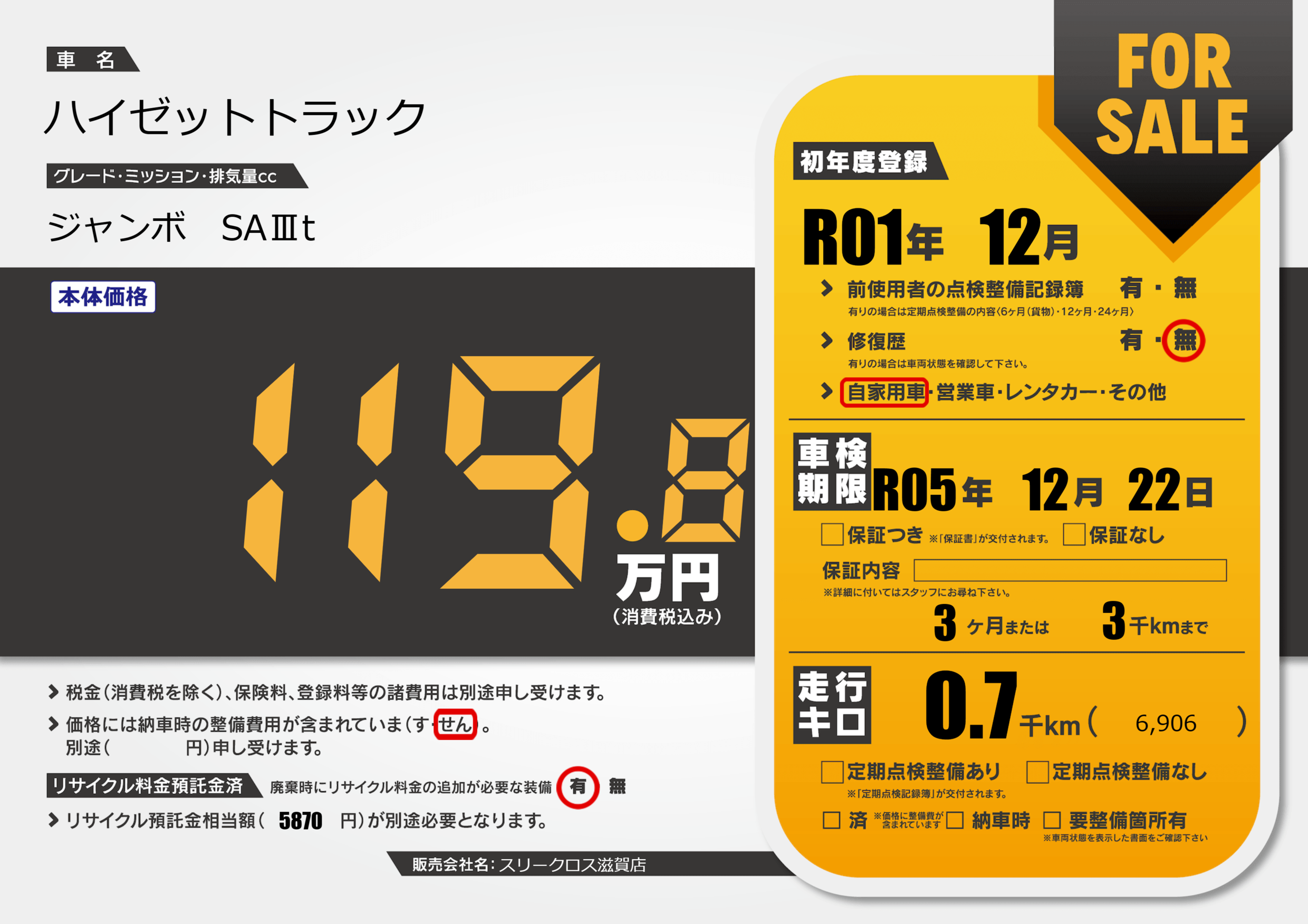| 車名 | ハイゼットトラック | グレード ミッション 排気量 |