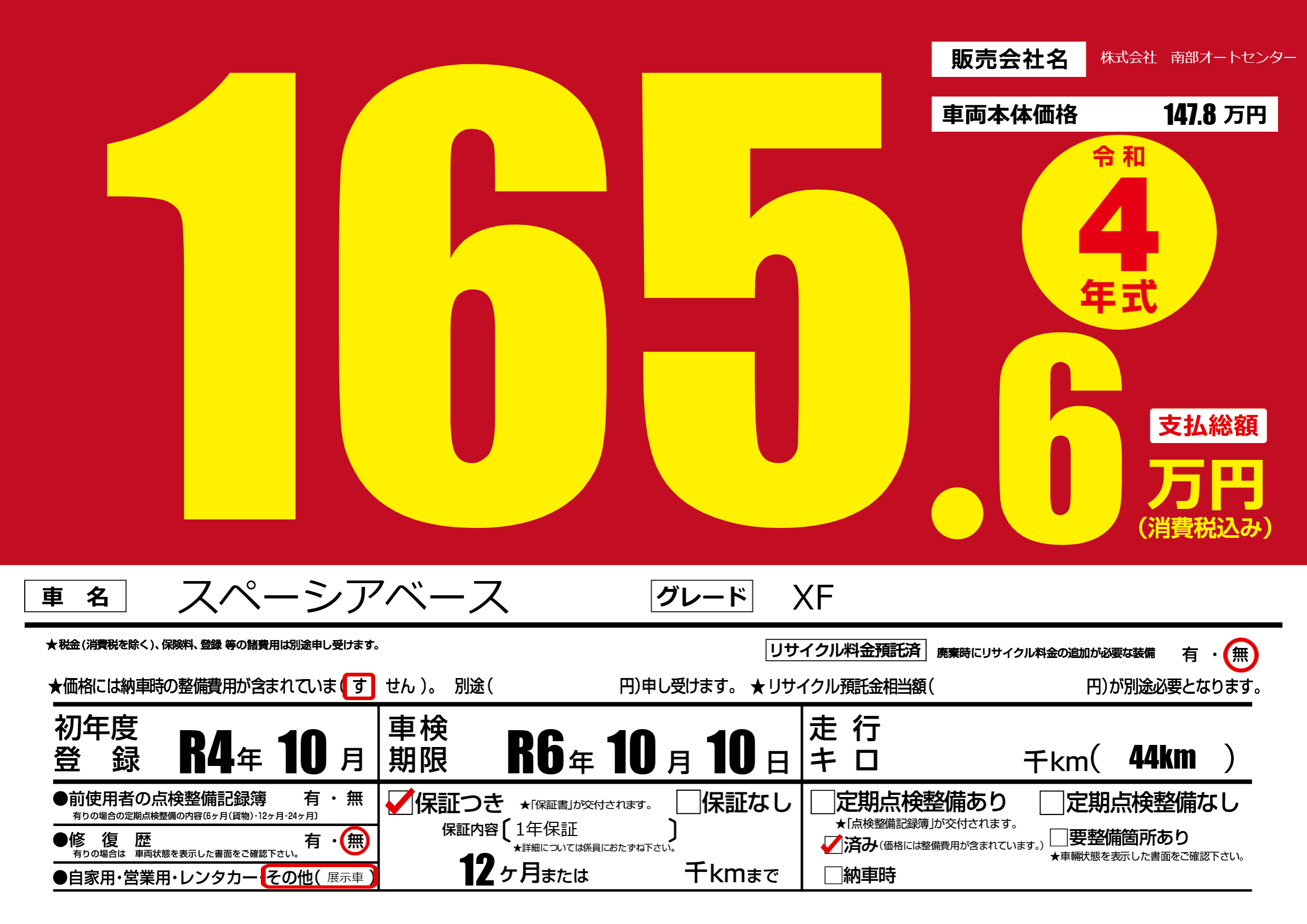 | 走行キロ | - | 初年度登録 | R4年10月 |