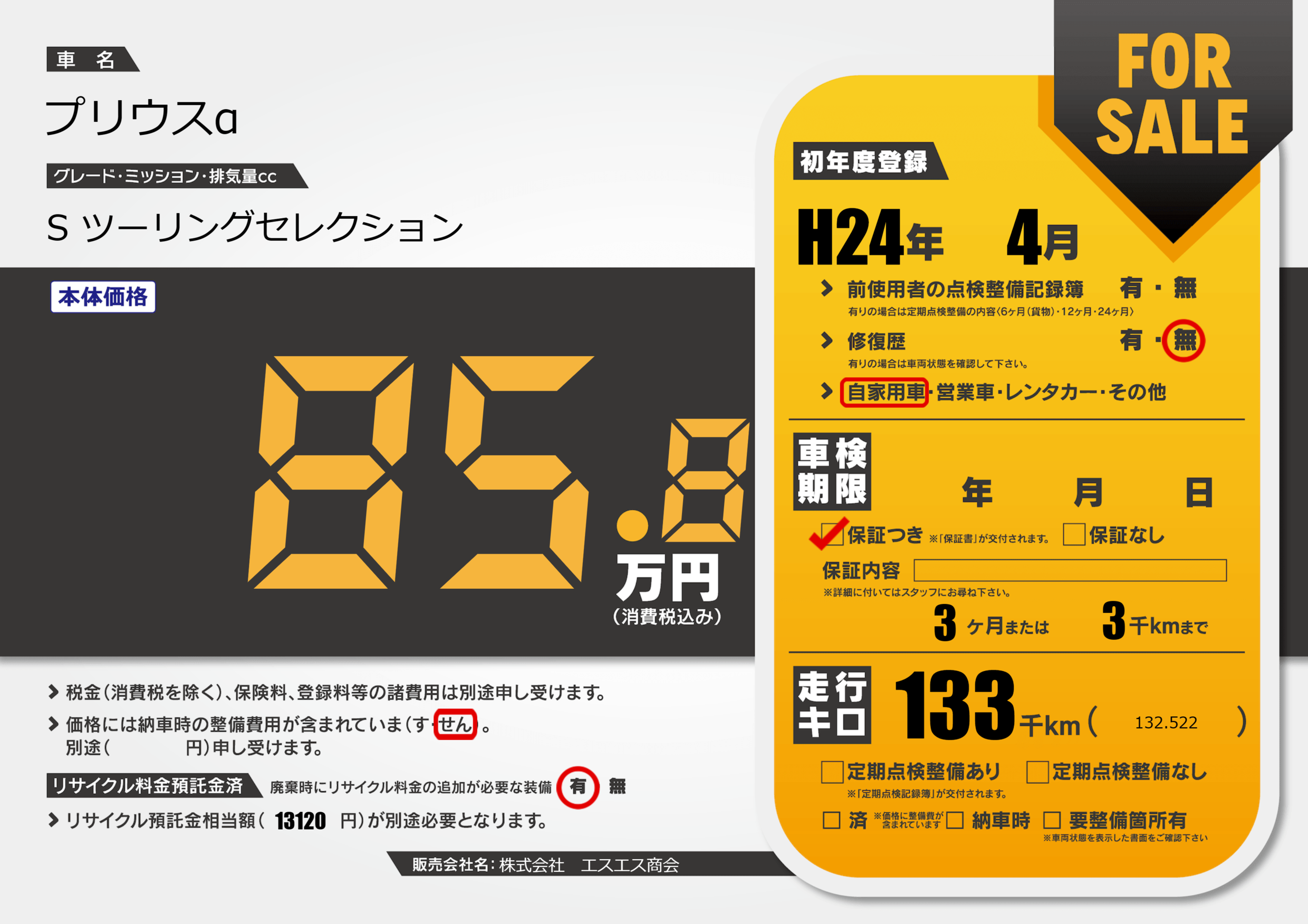 | 車名 | プリウスα | グレード ミッション 排気量 |