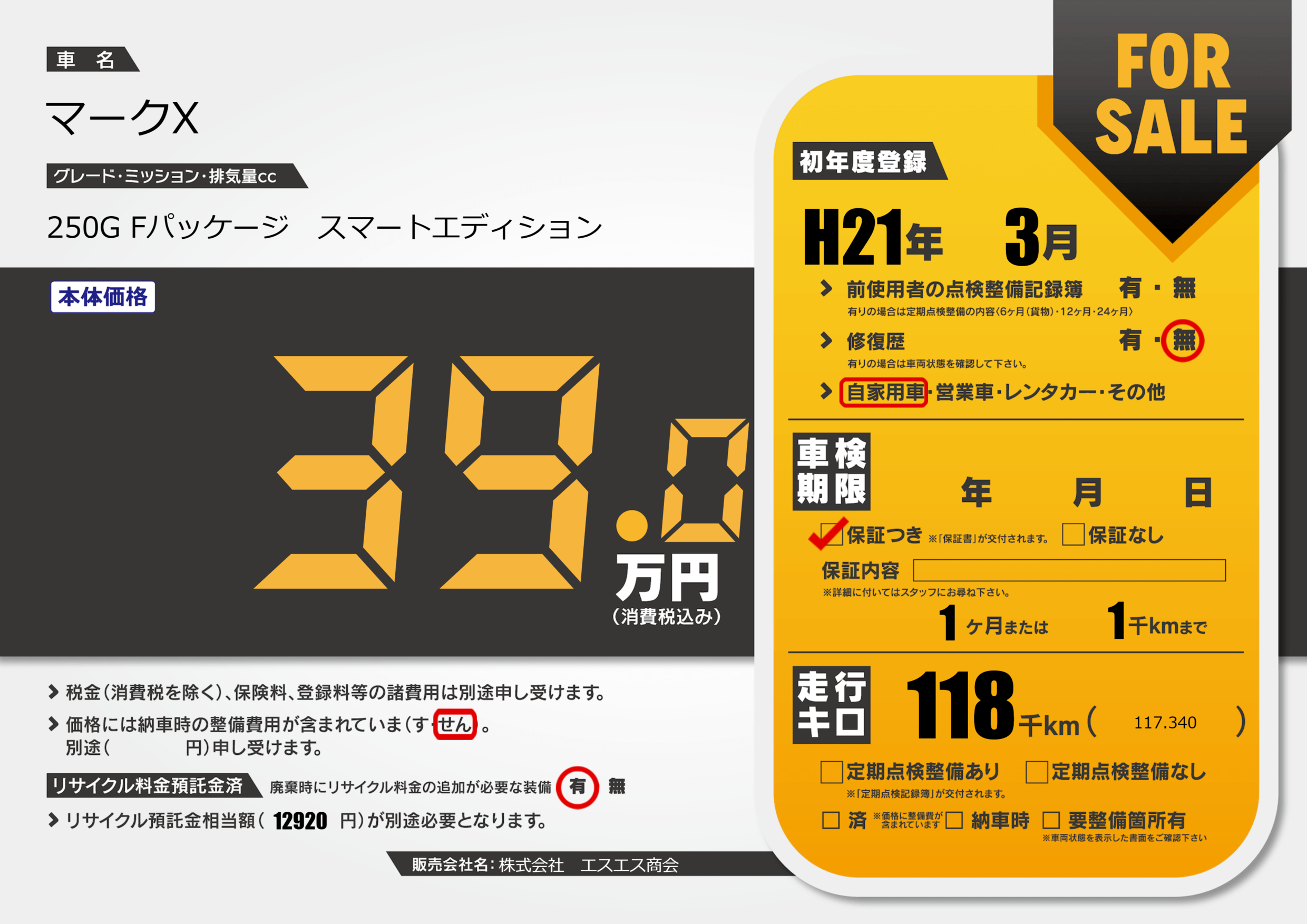 | 走行キロ | 11.8万km | 初年度登録 | H21年3月 |