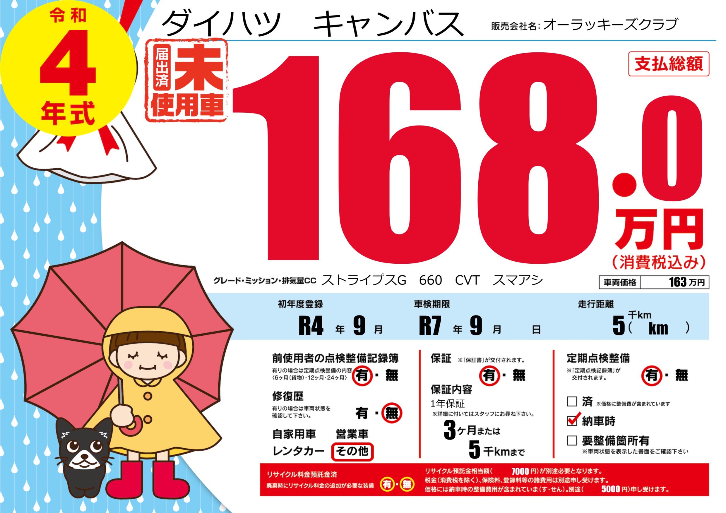 | 車検制限 | R7年 9月 - 日 | ||