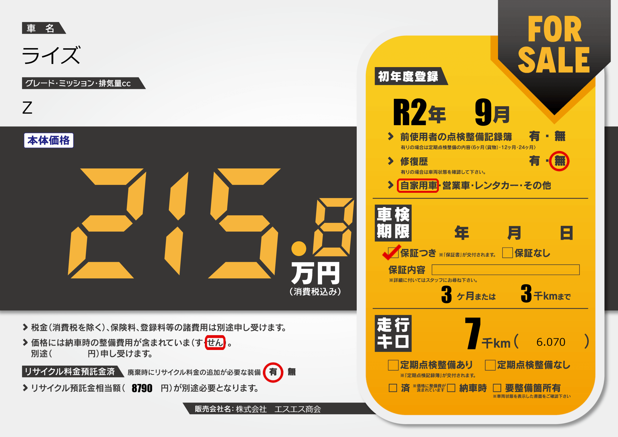 | 走行キロ | 0.7万km | 初年度登録 | R2年9月 |