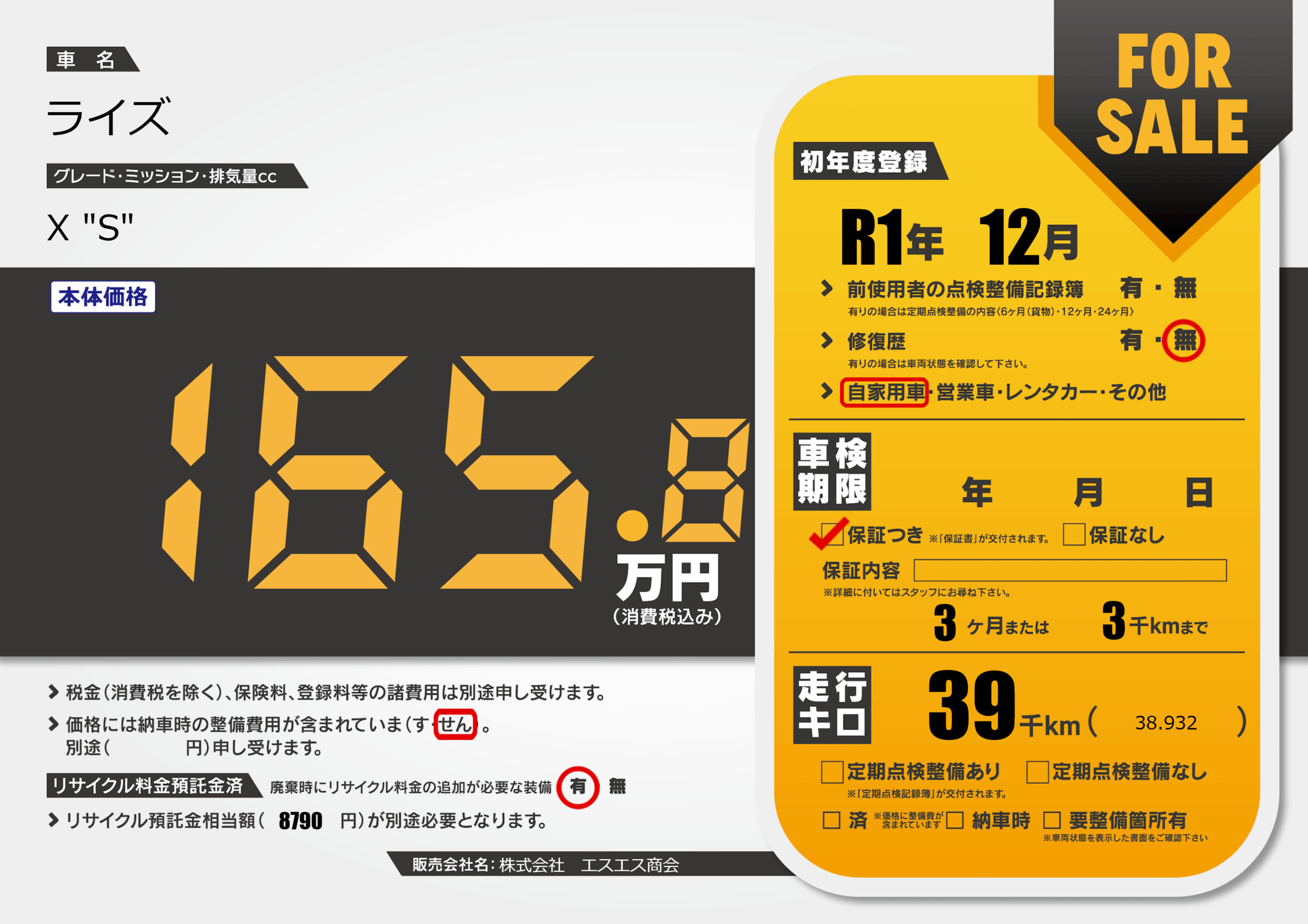 | 車名 | ライズ | グレード ミッション 排気量 |