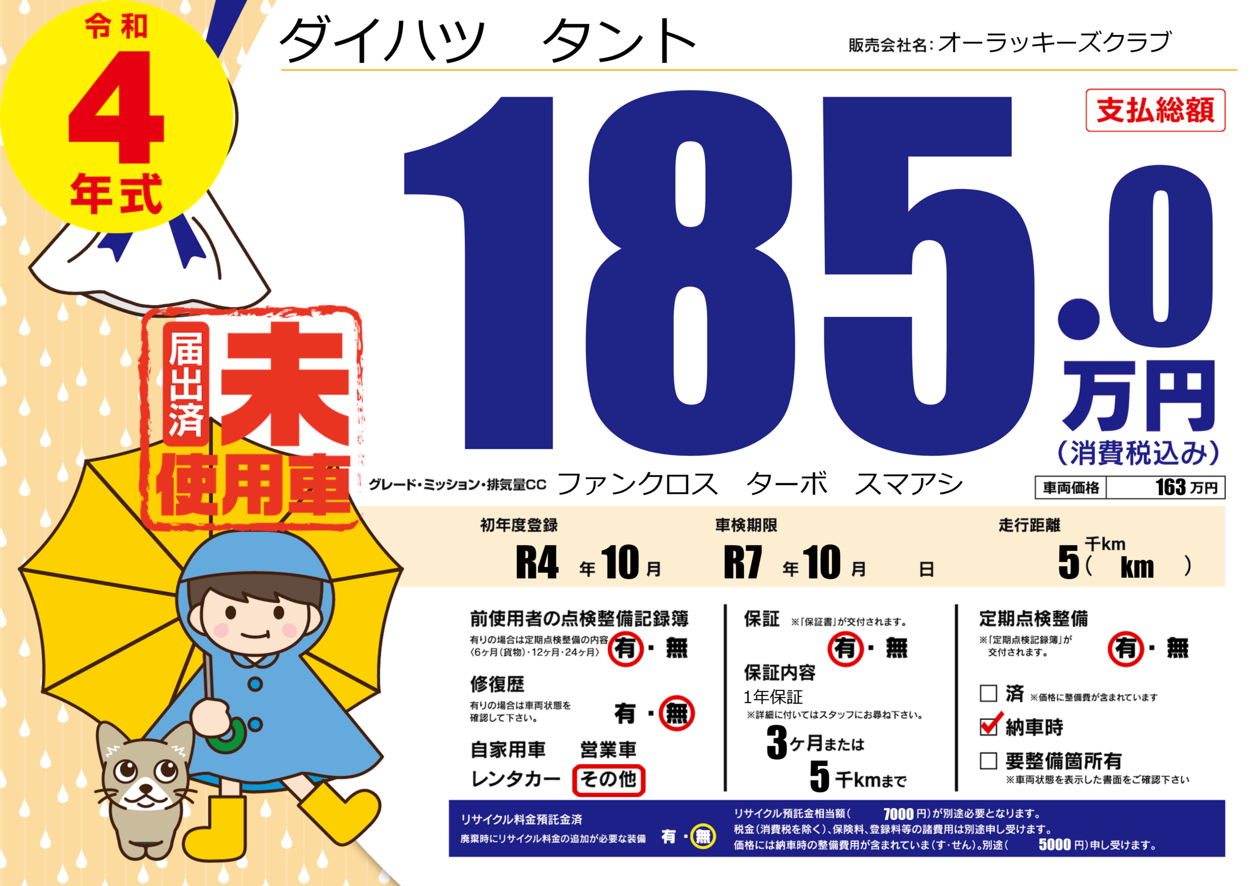 | 走行キロ | 0.5万km | 初年度登録 | R4年10月 |